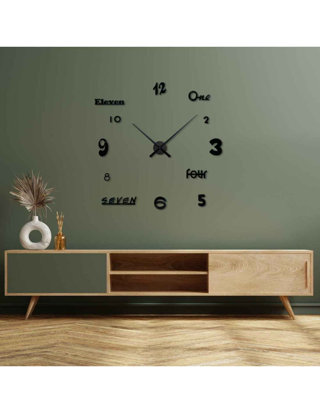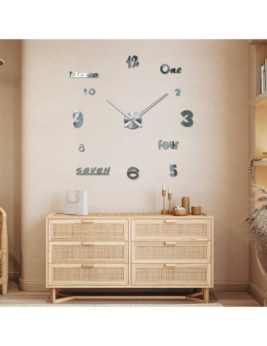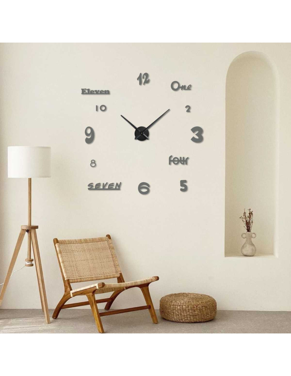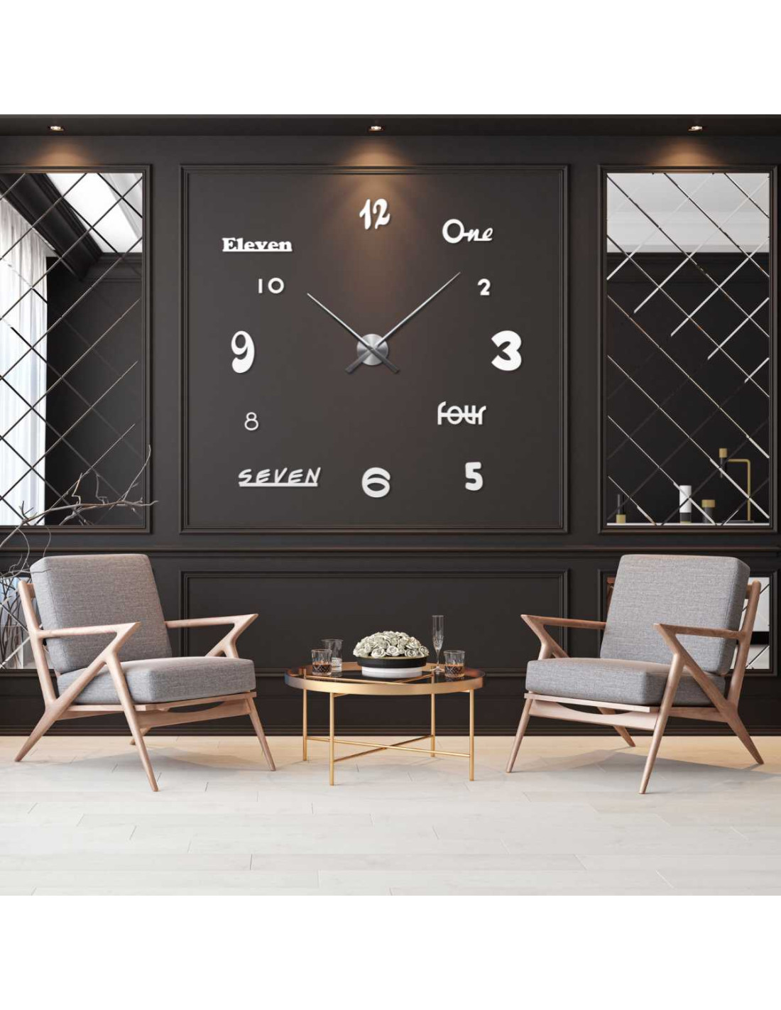 Ez a modern óra elegáns minimalista dizájnt, csendes és sima futású hárommutatós szerkezetet , valamint fúrás nélküli egyszerű összeszerelést ötvöz .