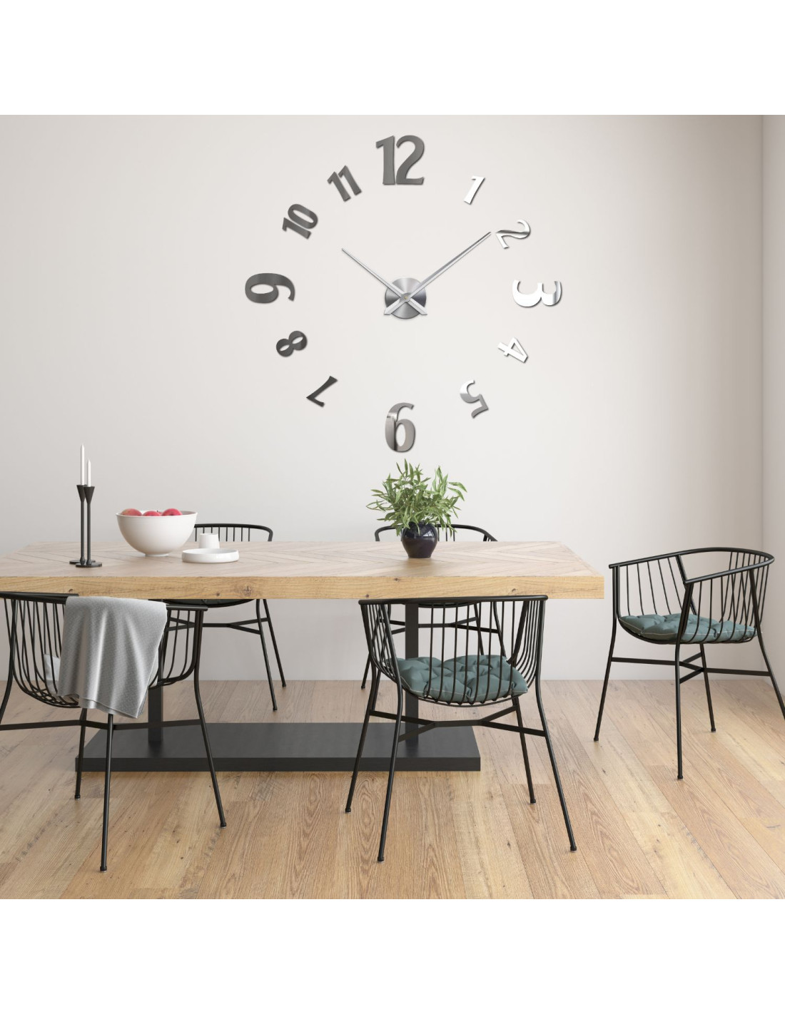 A nagyméretű, öntapadós órák vastag számokkal és fém középrésszel ideális megoldást jelentenek bármilyen modern belső térbe.