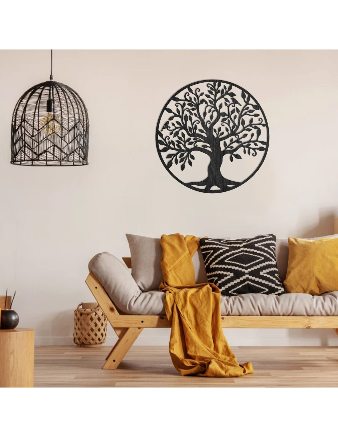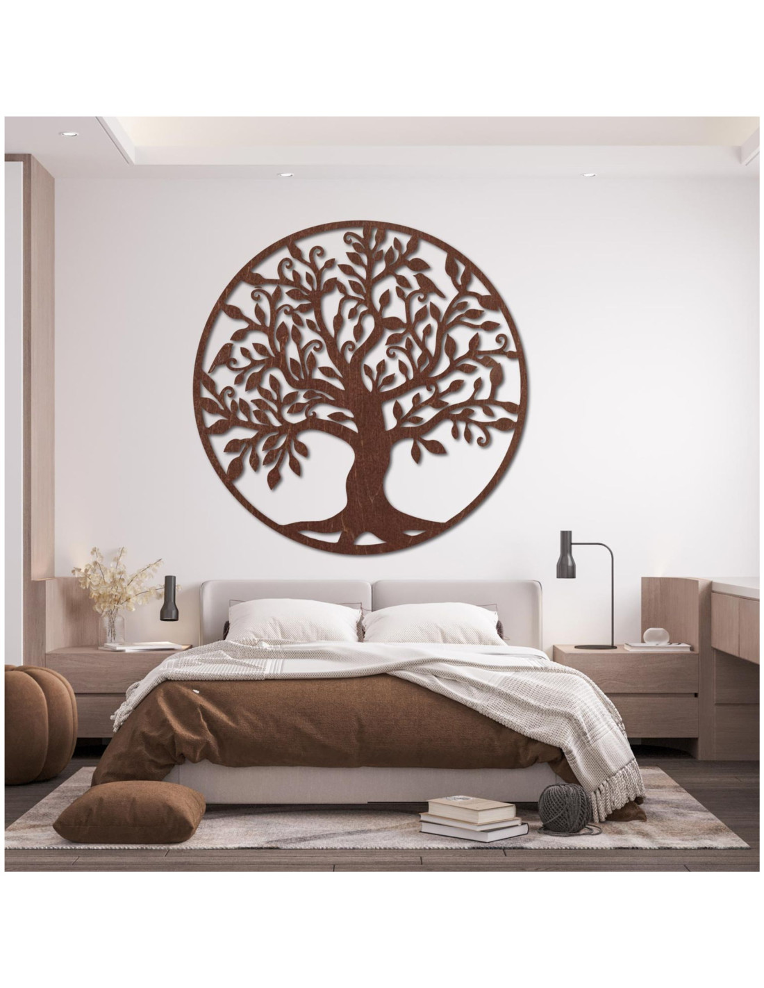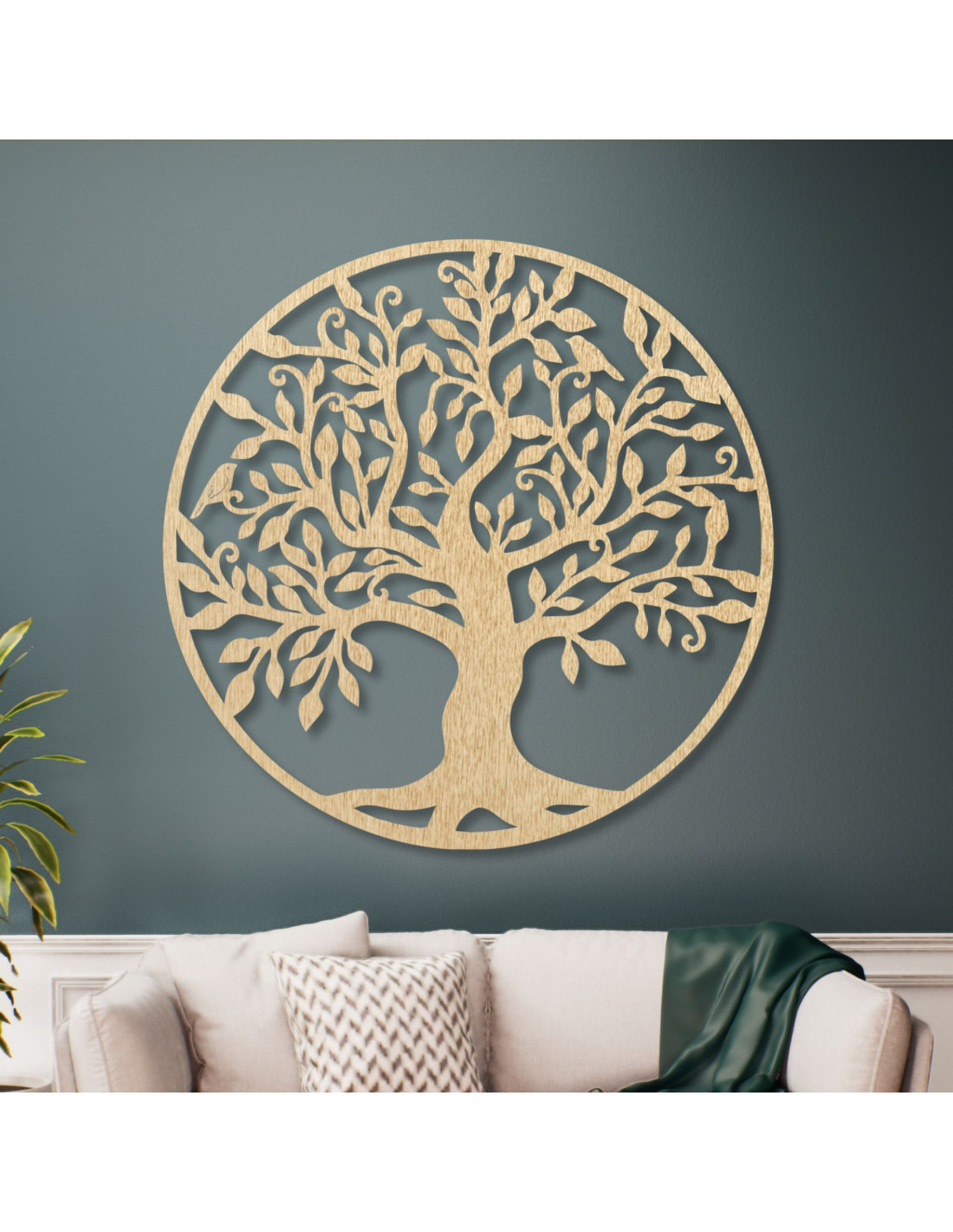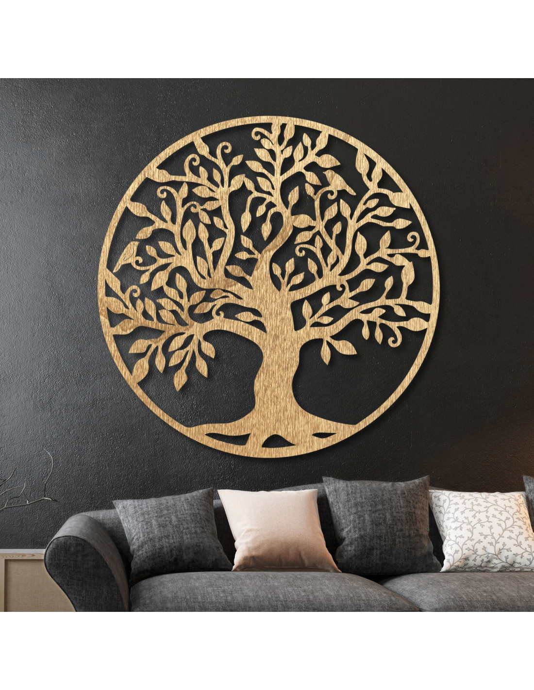 Az életfa formájú fából készült fali dekoráció stílusos és elegáns kiegészítő, amely bármely belső térben feldobja a hangulatot.