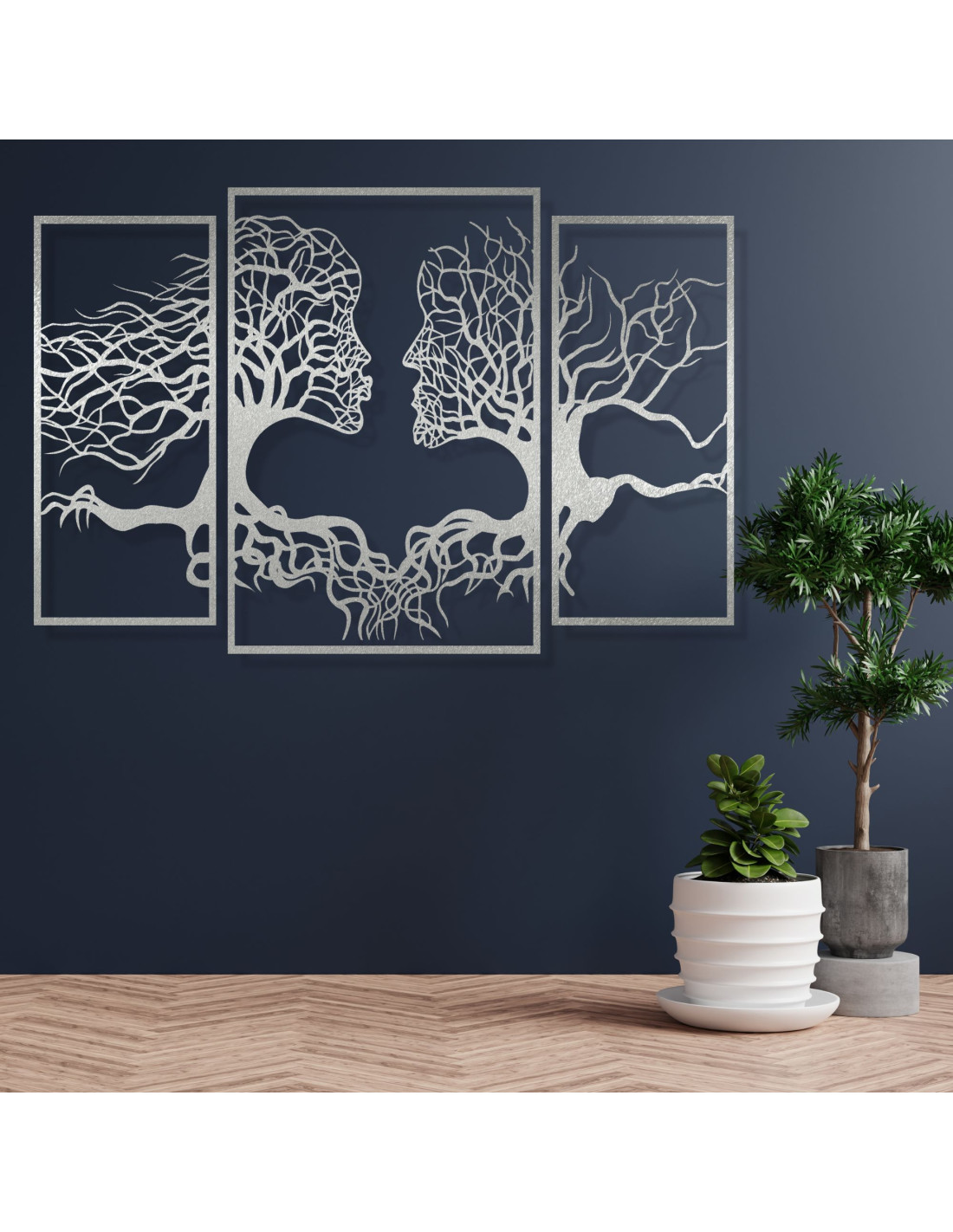 Faágakból összefonódó arcokat ábrázol, amelyek az emberek közötti kapcsolatot és egységet fejezik ki. A fehér háttérrel alkotott erős kontrasztjának köszönhetően igazi dísze lesz otthonának. Egyedi dizájnja ideális egy nappali, iroda vagy művészeti stúdió feldobására, és biztosan minden látogató figyelmét felkelti.