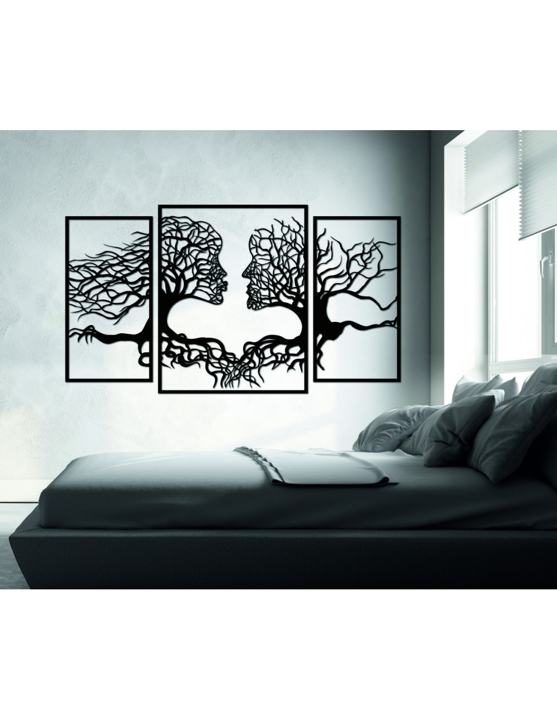 Faágakból összefonódó arcokat ábrázol, amelyek az emberek közötti kapcsolatot és egységet fejezik ki. A fehér háttérrel alkotott erős kontrasztjának köszönhetően igazi dísze lesz otthonának. Egyedi dizájnja ideális egy nappali, iroda vagy művészeti stúdió feldobására, és biztosan minden látogató figyelmét felkelti.