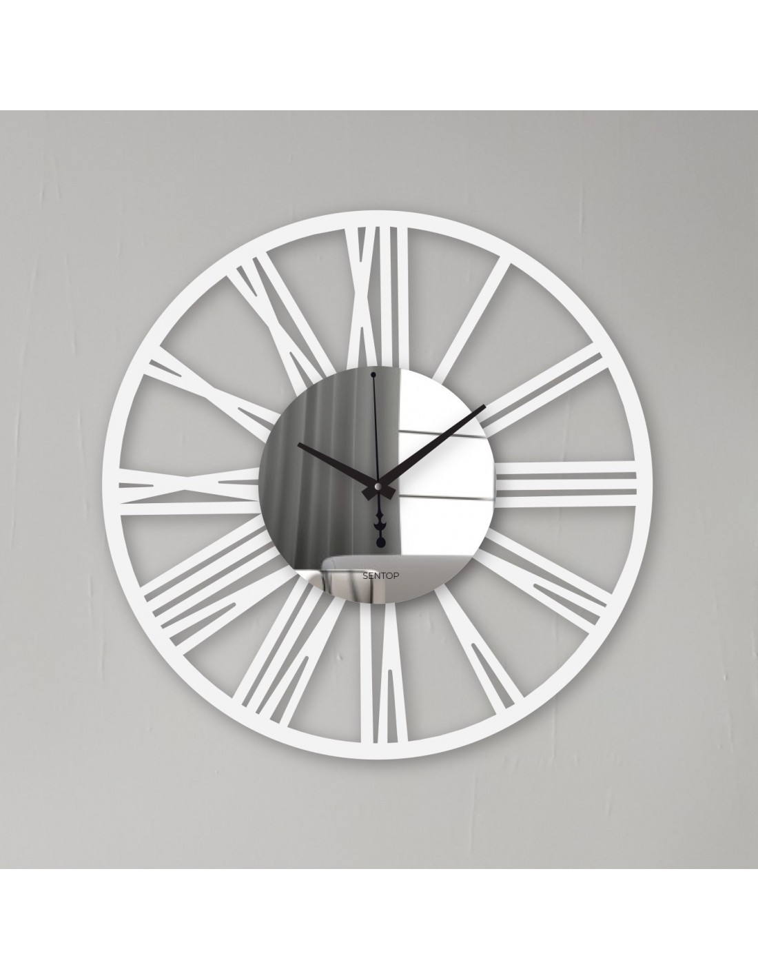 - Modern dizájn - kontrasztos fekete római számok és tükrös középpont a luxushatásért.