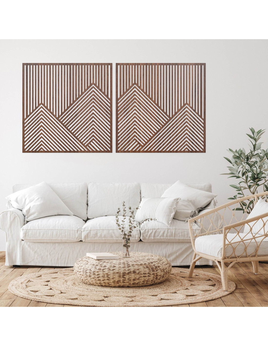 Fa faldekoráció geometrikus hegyvonalakkal - 2 darabos szett
