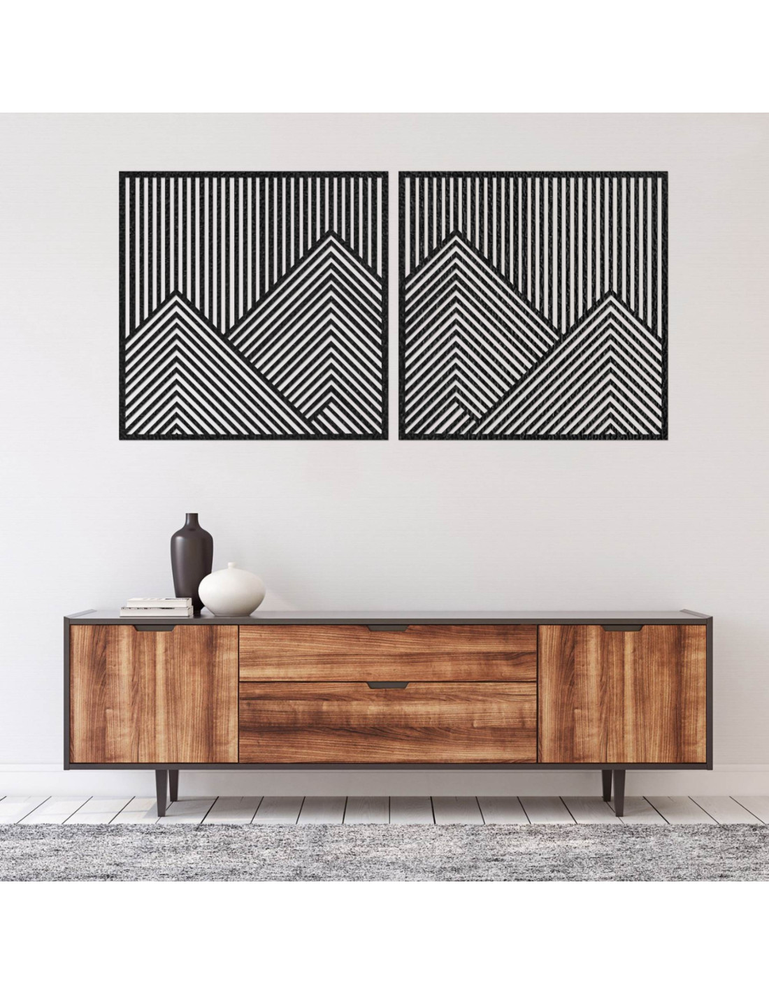 Kettőt ábrázoló faldekoráció geometrikus hegyvonalakkal | LERA