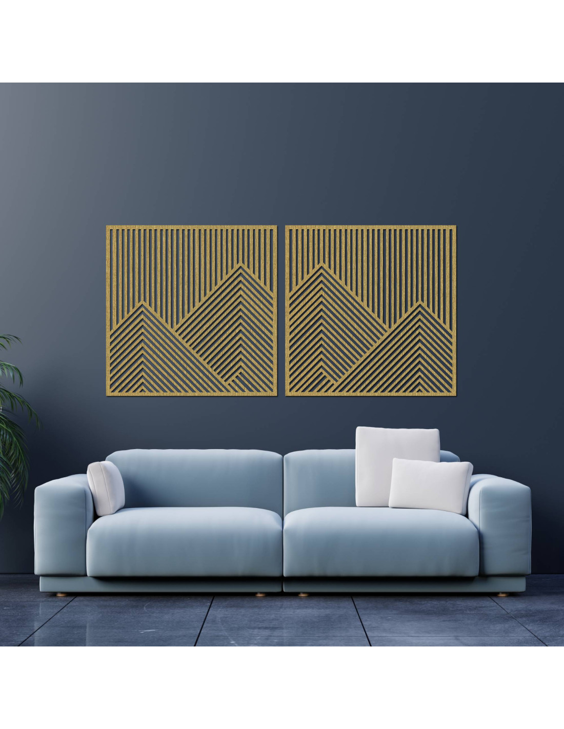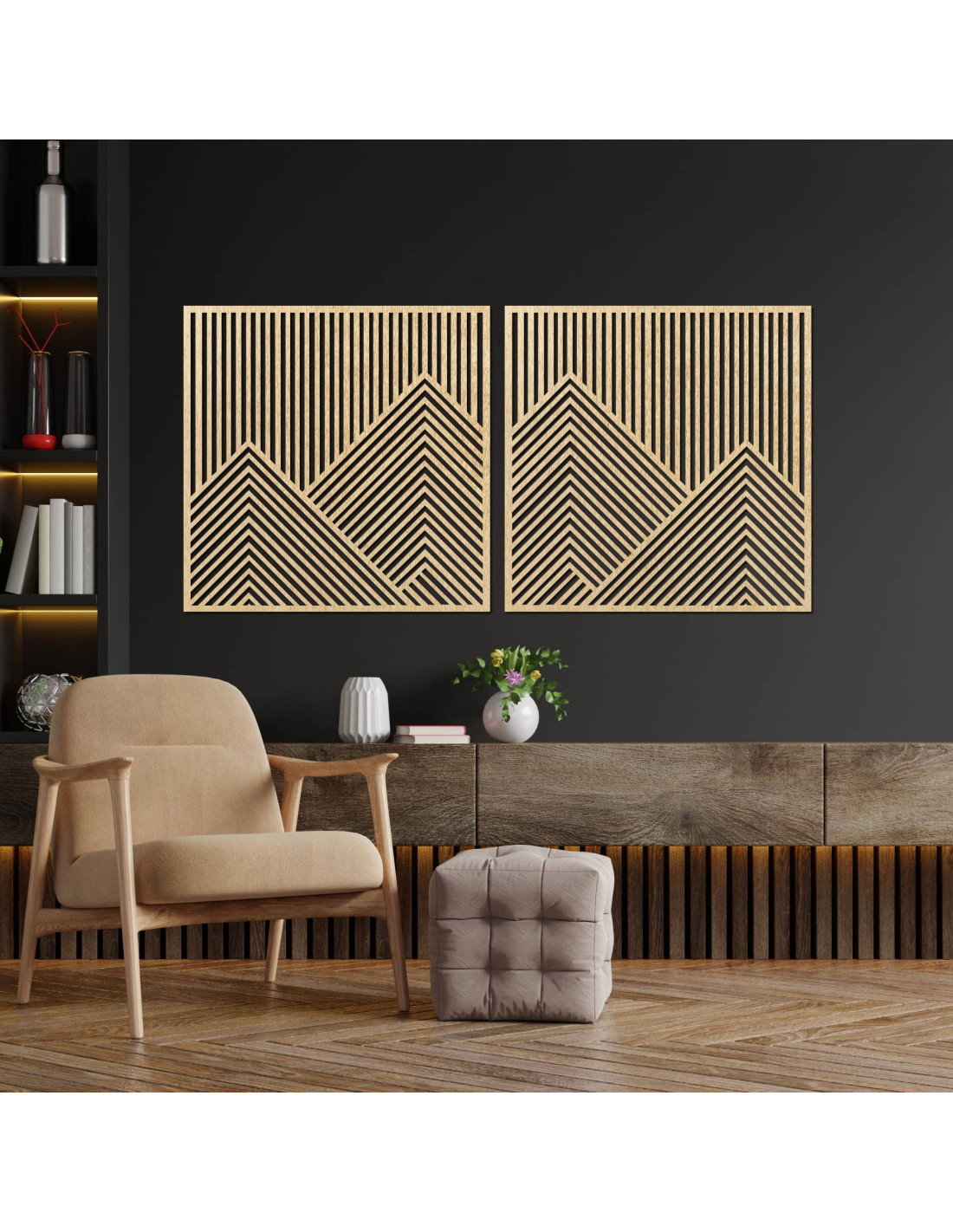 Fa faldekoráció geometrikus hegyvonalakkal - 2 darabos szett