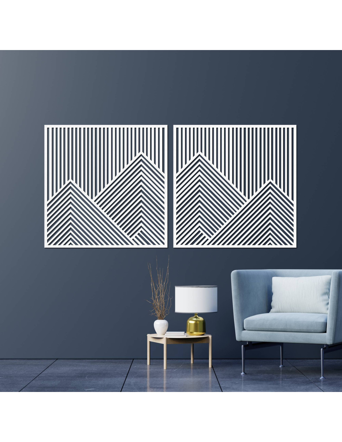 Fa faldekoráció geometrikus hegyvonalakkal - 2 darabos szett
