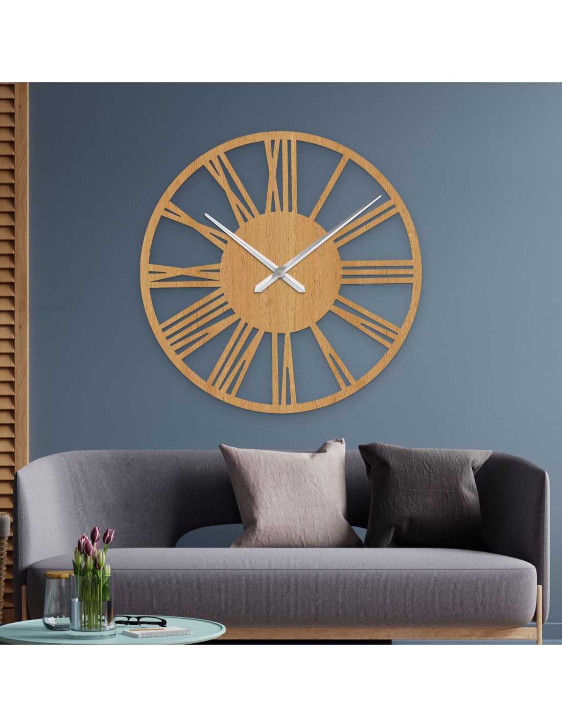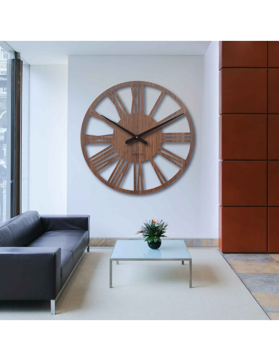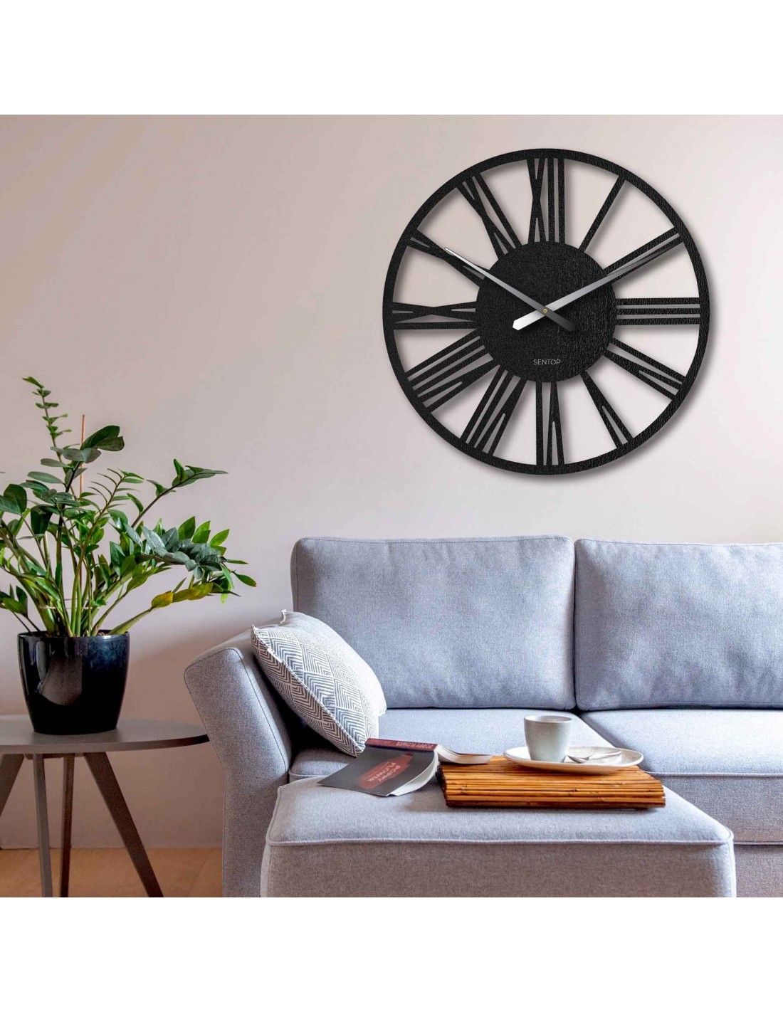 SentopNagyméretű, HDF lapból készült római falióra - egy stílusos kiegészítő, amely első látásra magára vonzza a tekintetet. Dobja fel otthonát ezzel az elegáns, 80 cm átmérőjű, minimalista és modern stílusban tervezett órával. Finoman texturált felületük és jellegzetes mutatóik kiváló leolvashatóságot garantálnak még nagyobb távolságból is, és kifinomult hangulatot kölcsönöznek a térnek.