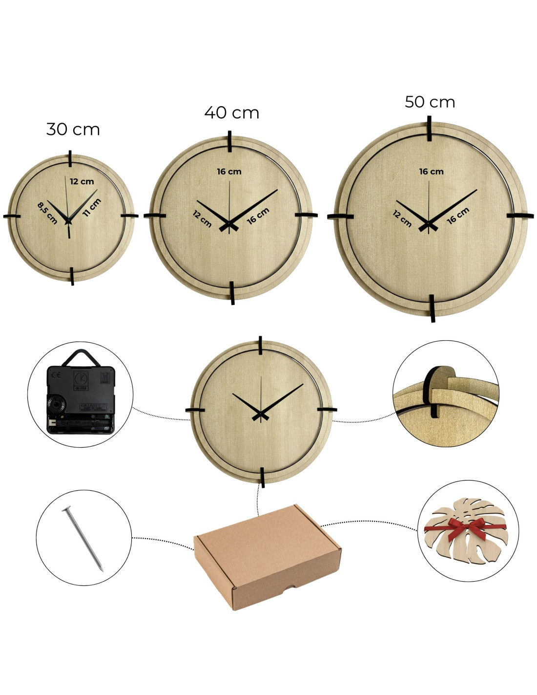 - Óra átmérője: 30 cm, 40 cm vagy 50 cm között választhat