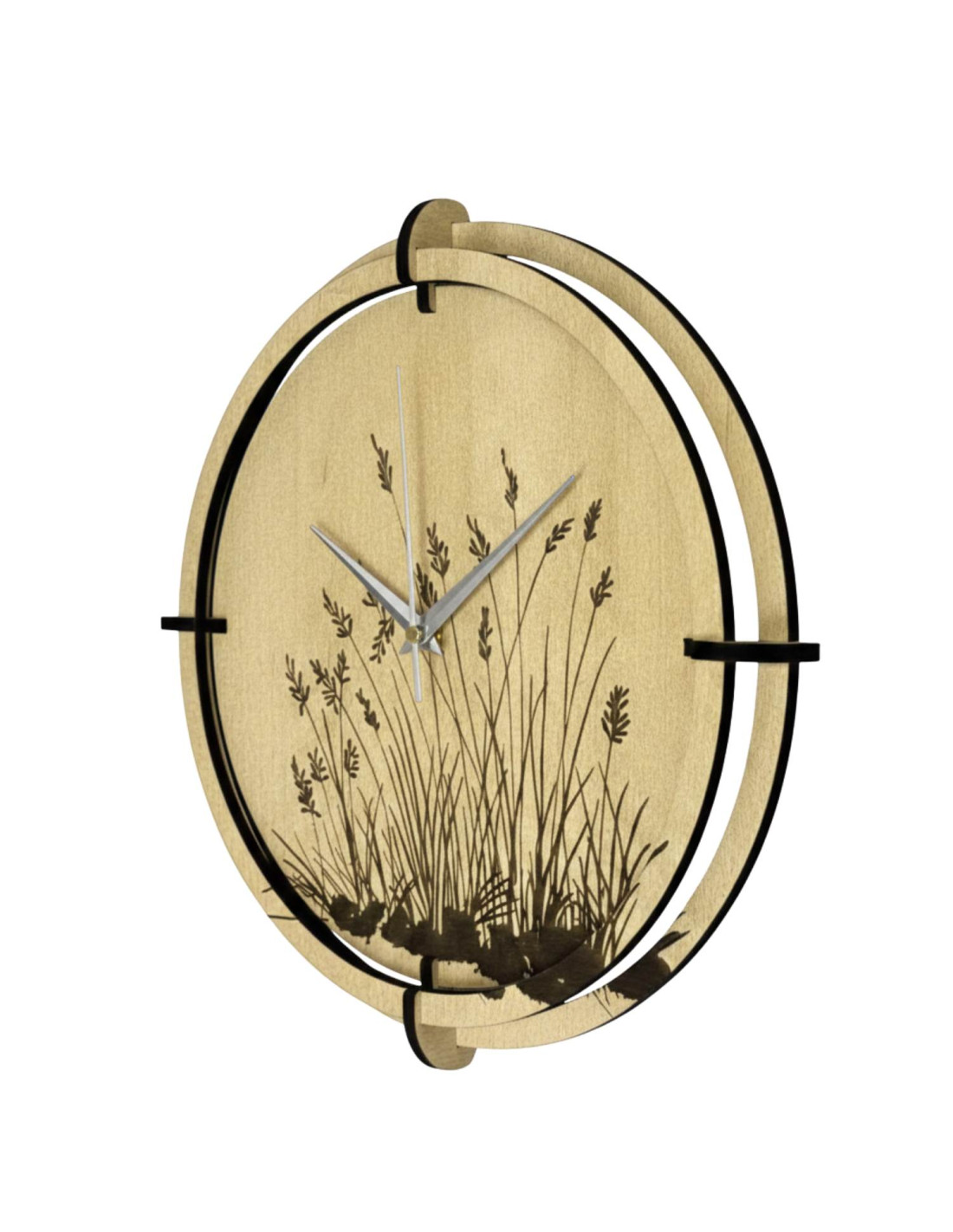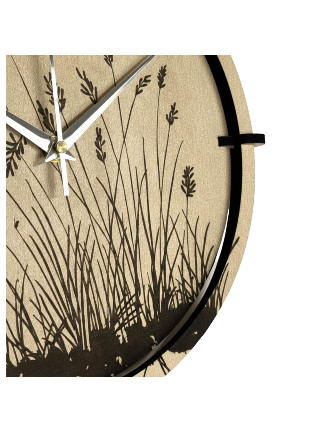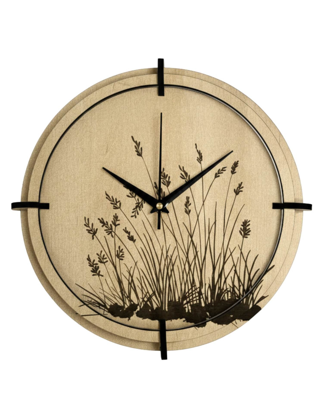Modern, juharfa díszítésű, finoman gravírozott természetes réti perje motívummal díszített, fából készült falióra, amely frissességet, könnyedséget és időtlen eleganciát kölcsönöz a belső térnek. A kontrasztos fekete mutatók és a csendes kvarc szerkezet precíz és diszkrét működést biztosítanak, ideális nappaliba, hálószobába és dolgozószobába. Kiváló minőségű HDF lapból készült, részletgazdag kivitelben, fúrás nélkül könnyen felszerelhető. A helyi szlovák gyártás minden darabot eredeti dizájnkiegészítővé tesz. Válassza ki az ideális méretet, és adjon harmonikus, természetes akcentust otthonának.