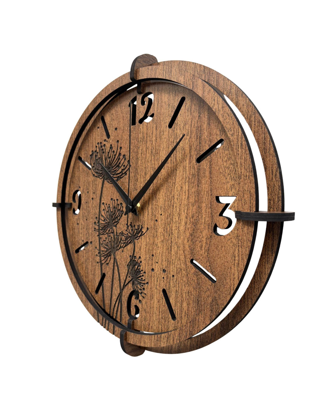 Kiváló minőségű HDF lapból (wenge/dió) készült, precízen faragott számlappal és stílusos mutatókkal.