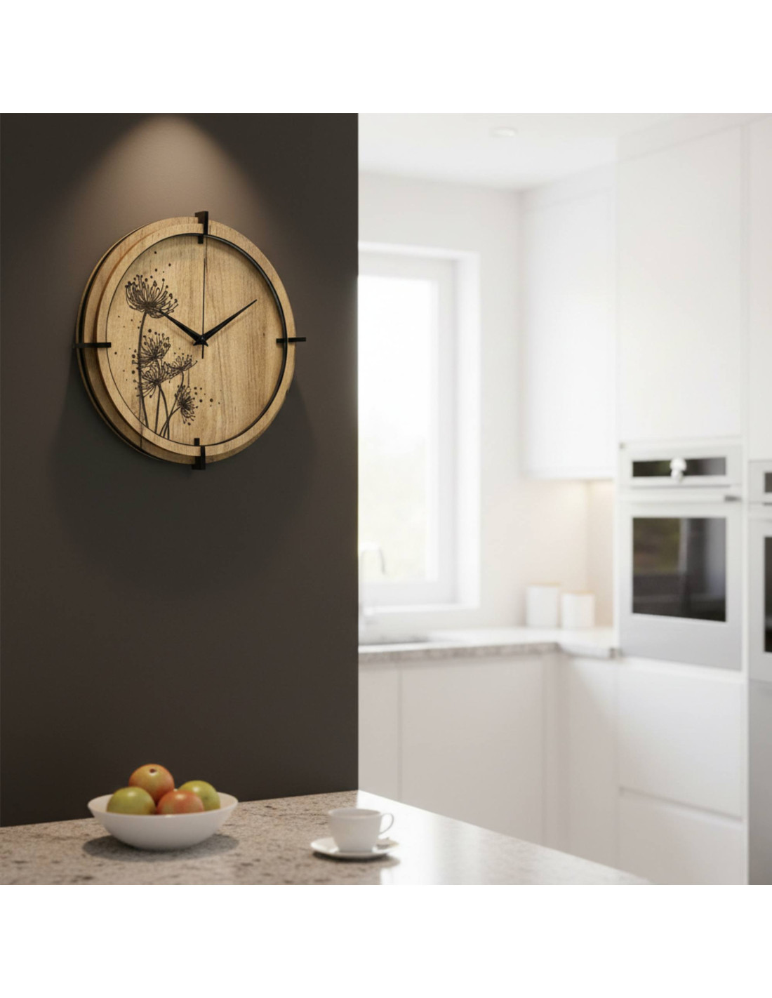 Ez a HDF fából készült falióra a modern anyagokat a becsületes kézműves munkával ötvözi.