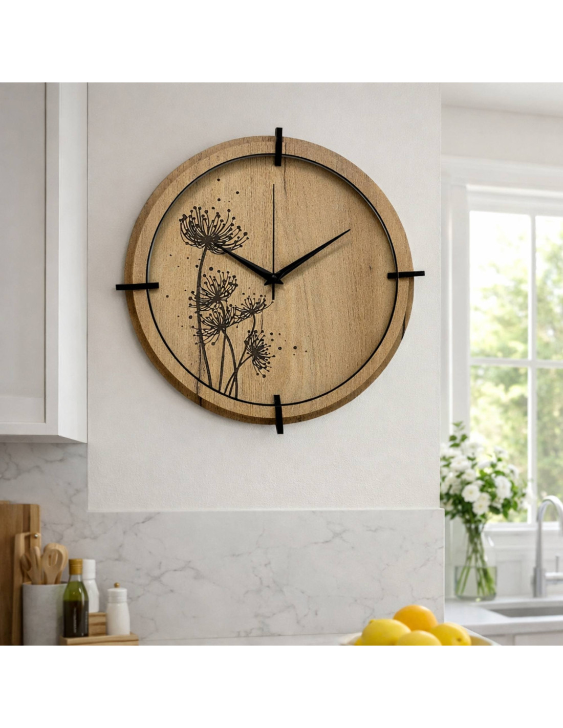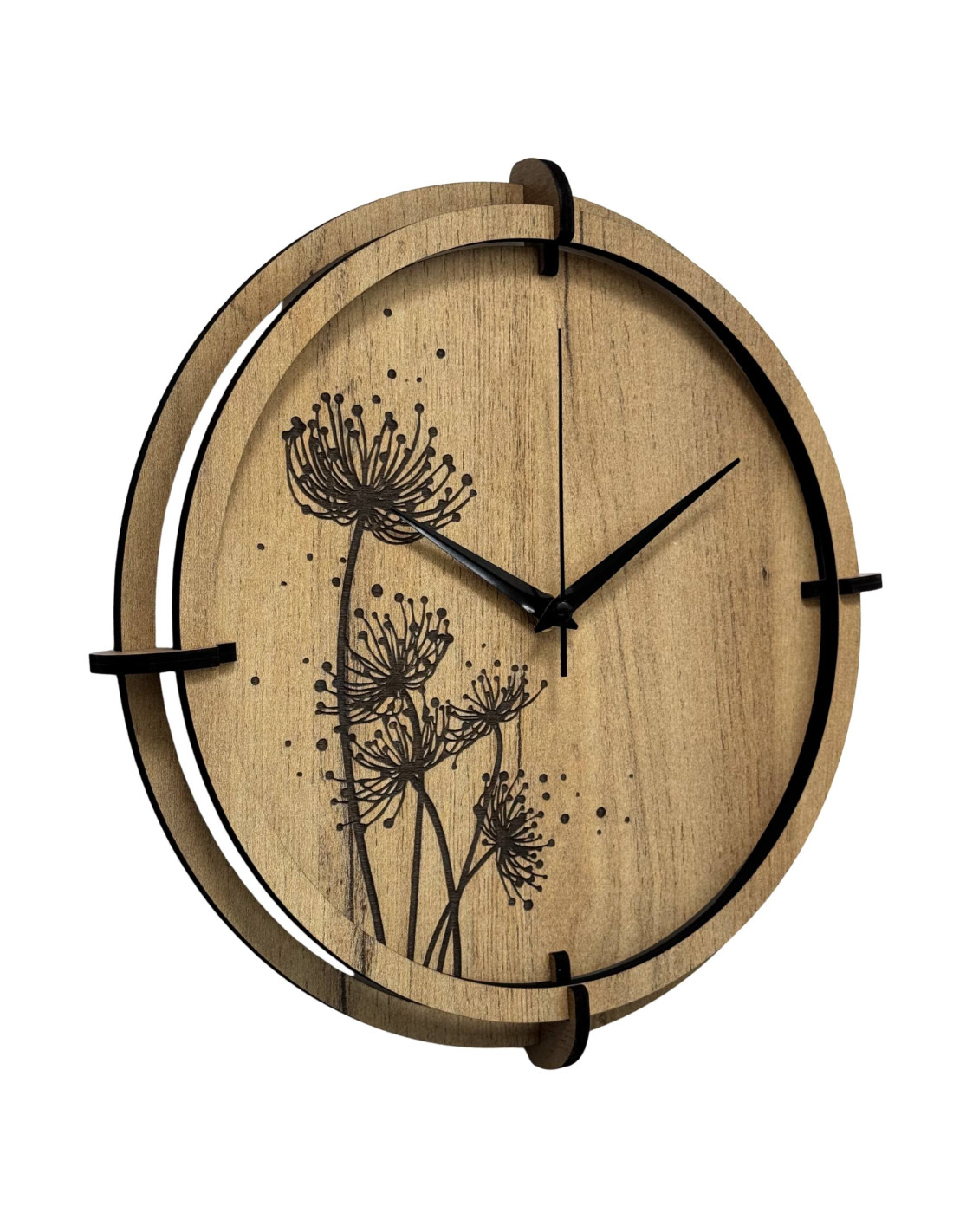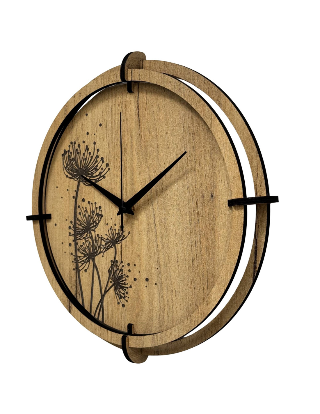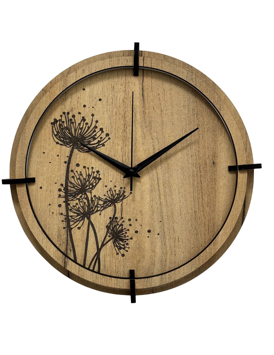 HDF lapból készült, csendes működésű, rét motívumos dizájner óra.