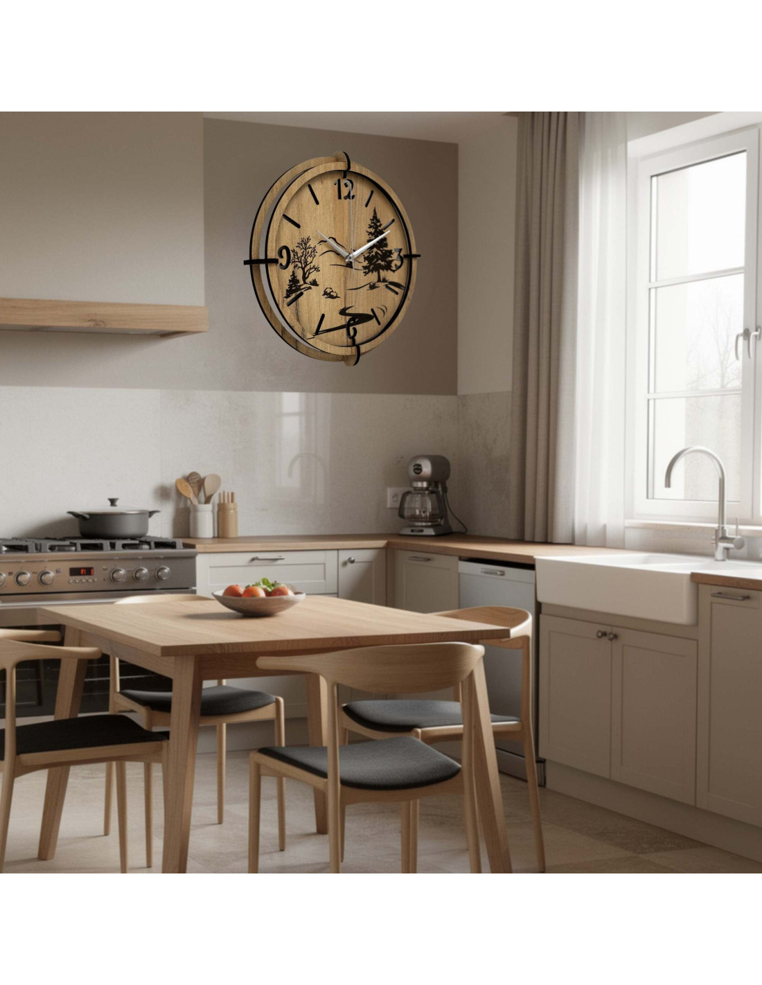 SentopA modern, fából készült faliórák eredeti 3D-s természeti táj motívummal harmóniát és békét hoznak a belső térbe.