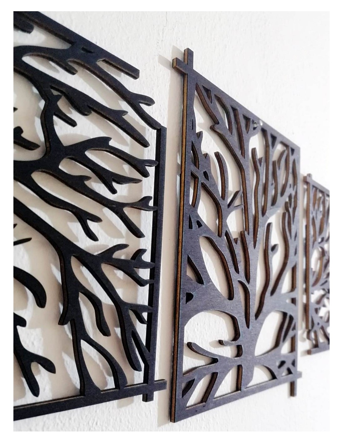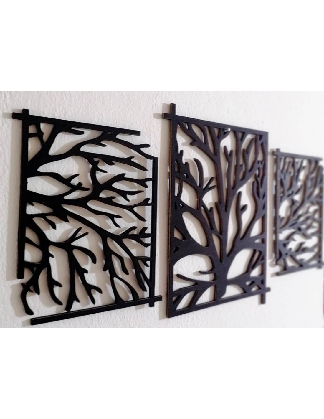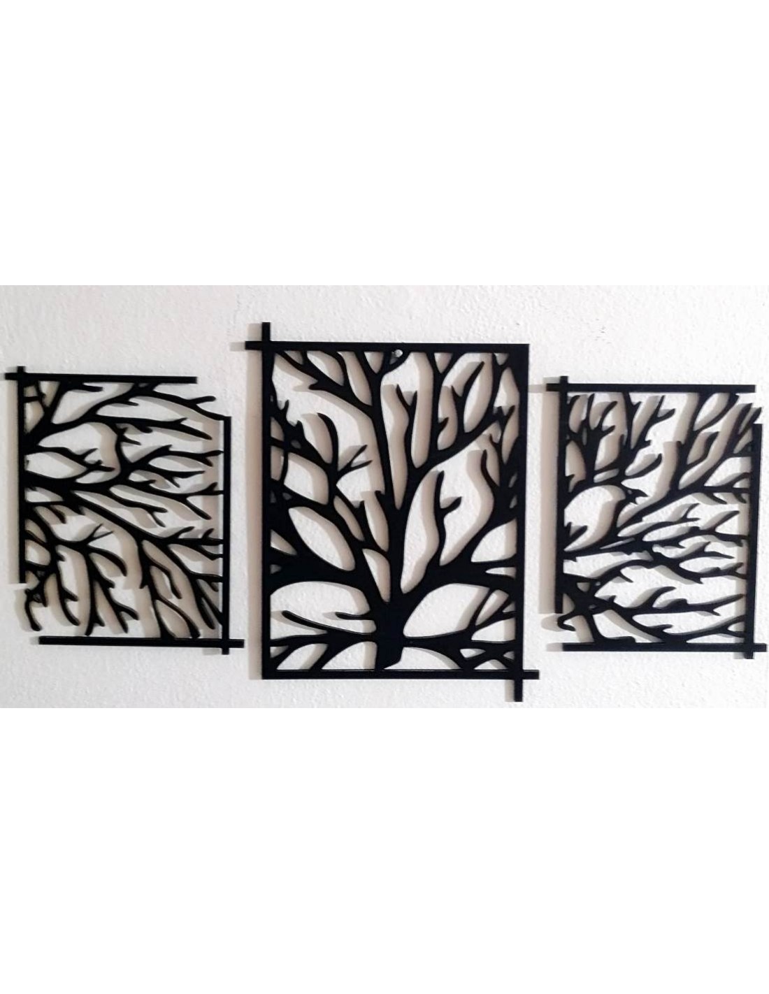 Ez a dekoratív falpanel modern és elegáns dizájnnal ragadja meg a fák szépségét. Kiváló minőségű anyagból készült, fekete felülettel és természetes díszítésekkel, a panel feltűnő vizuális kontrasztot teremt, amely felfrissít bármilyen teret. Az ágak és levelek részletes mintázata egyedi és organikus érzetet kölcsönöz a darabnak.