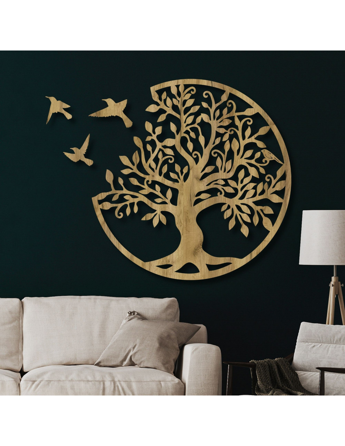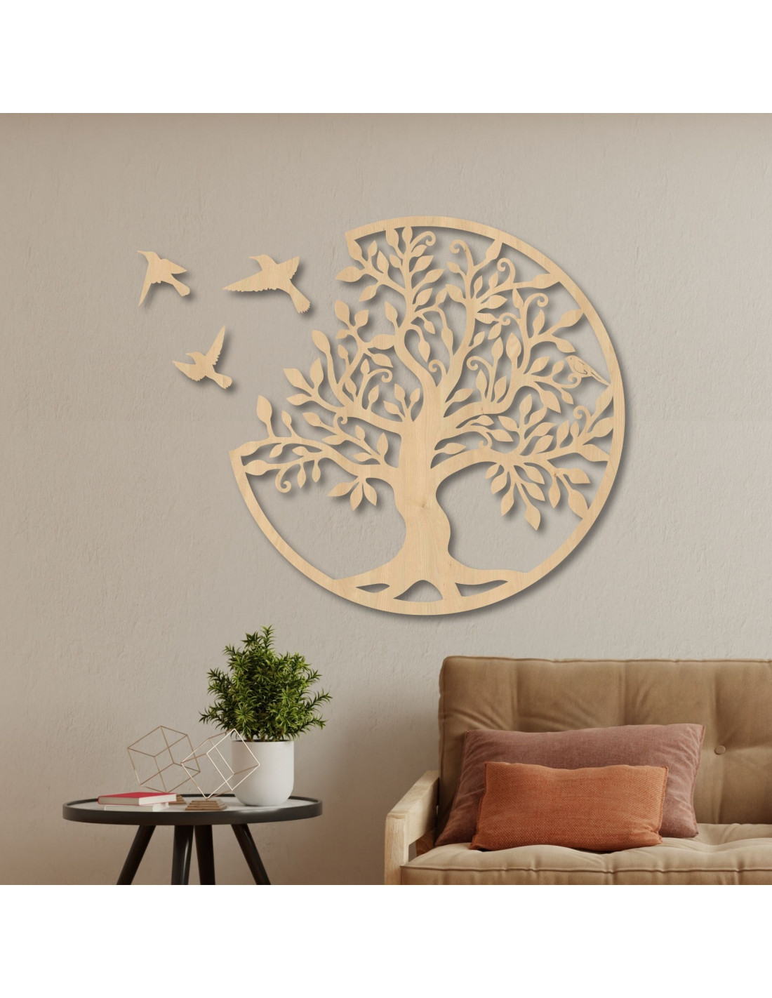 A madarakkal díszített, fából készült életfa több mint egy fali dekoráció - harmóniát, stabilitást és pozitív energiát hoz minden otthonba.