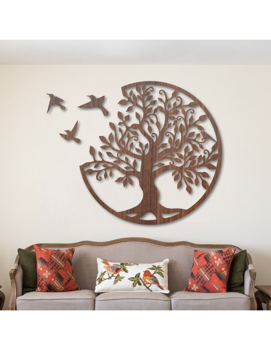 Fából készült faldekoráció, Életfa madarakkal - az egyensúly, a béke és a természet erejének szimbóluma.