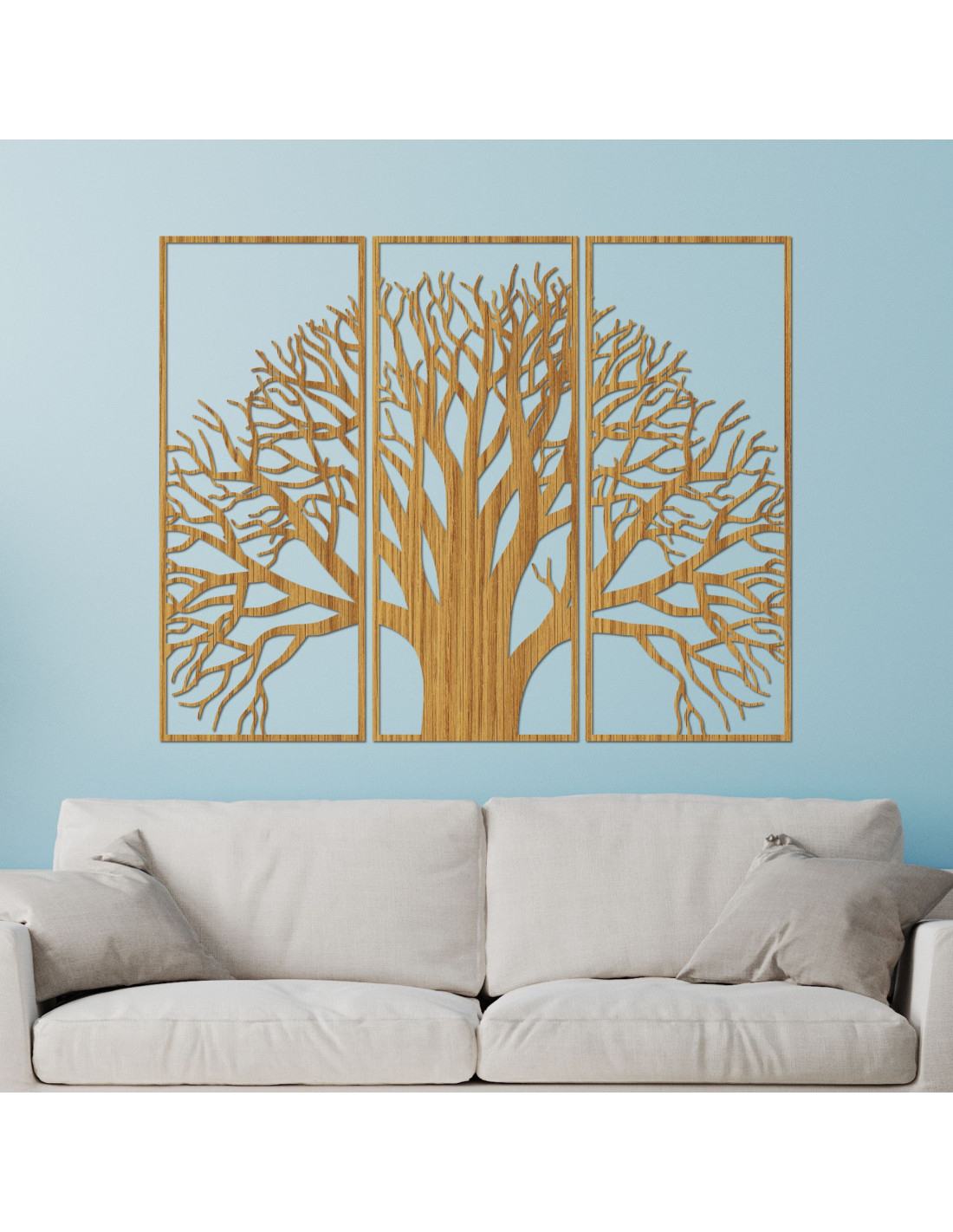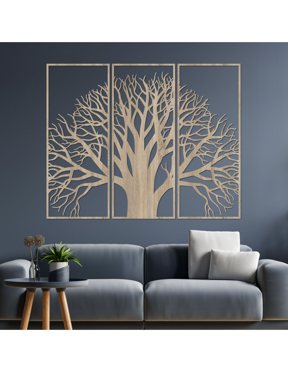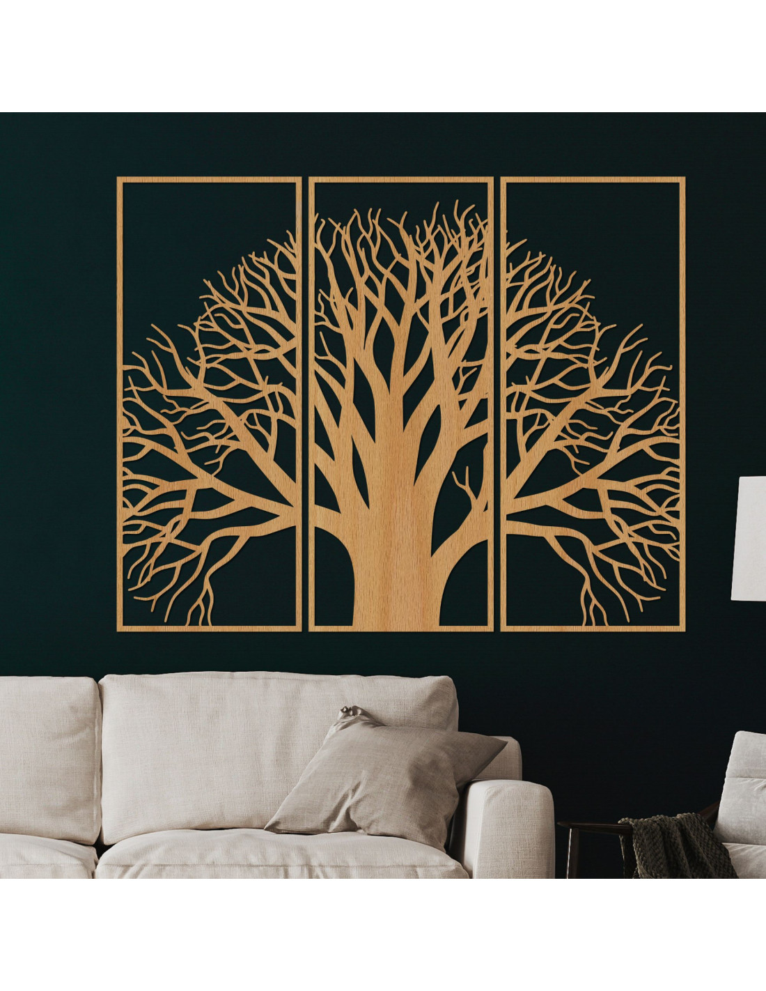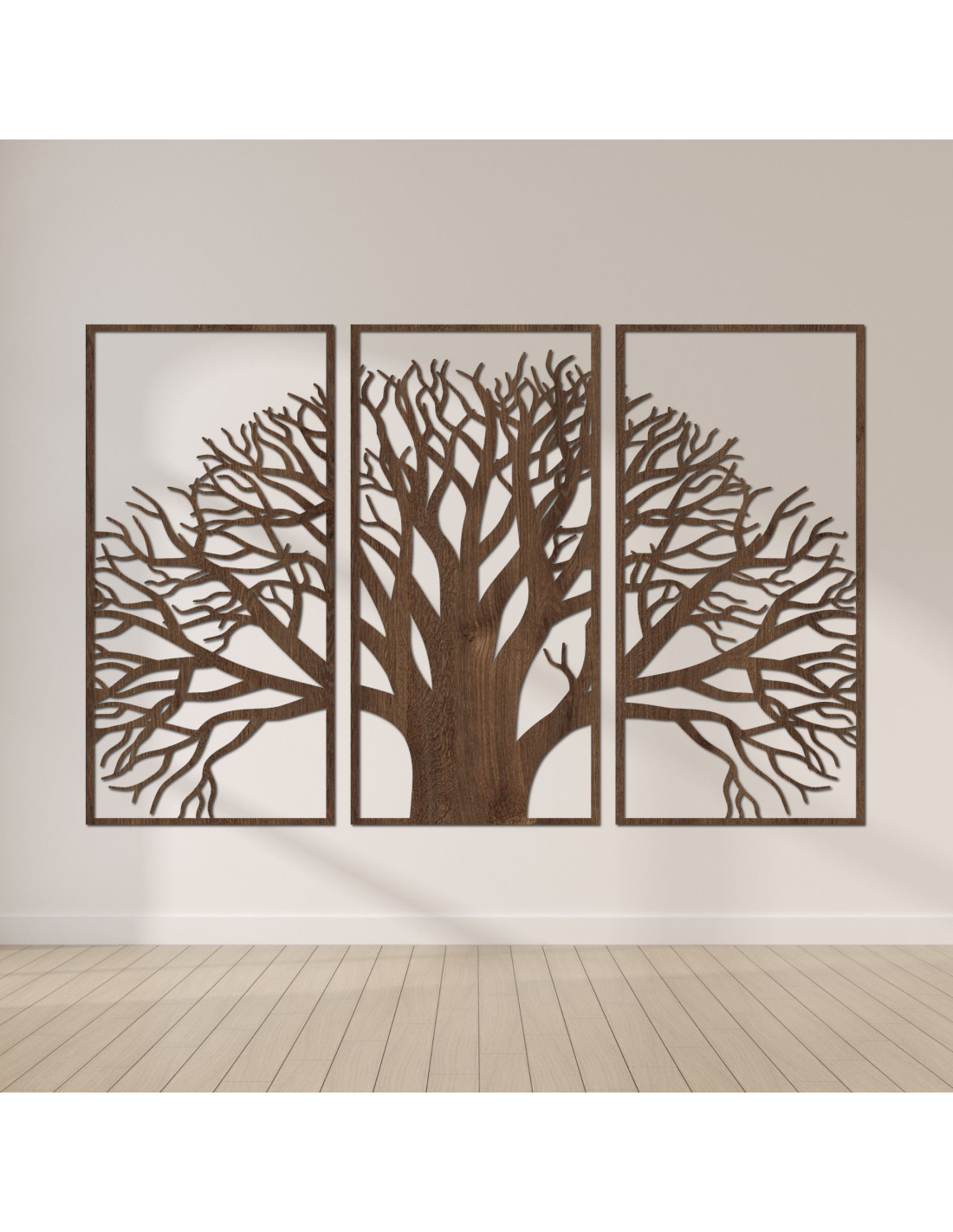 A több részből álló, fából készült életfa festmény a természetes szépség és a modern dizájn egyedülálló kombinációja. A kiváló minőségű fából készült, precízen faragott részletek harmonikus vizuális egészet alkotnak, amely mélységet, egyensúlyt és esztétikai értéket kölcsönöz a térnek. Az életfa szimbóluma békét, stabilitást és pozitív energiát hoz, így ez a festmény nemcsak dekoráció, hanem otthonod jelentős eleme is. Ideális azok számára, akik egy eredeti, kézzel készített, lélekkel és szimbolikus jelentéssel bíró kiegészítőt keresnek.