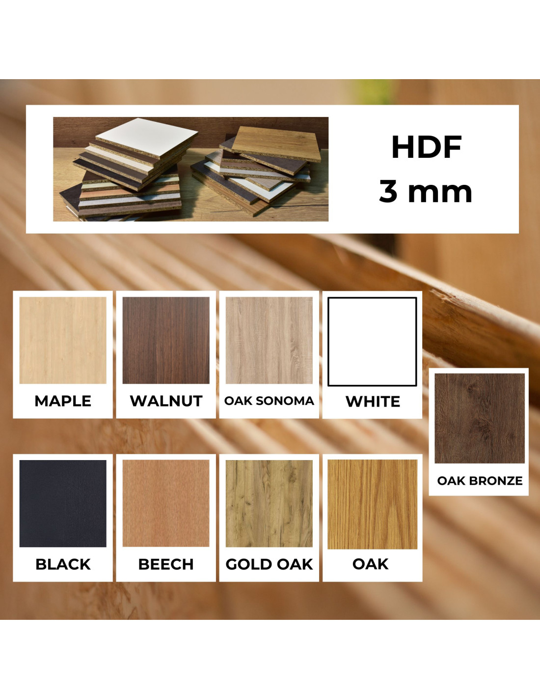 • A rétegelt lemez vékony rétegekből készült nyárfa fából / HDF különböző fa rostok préselésével készül.
