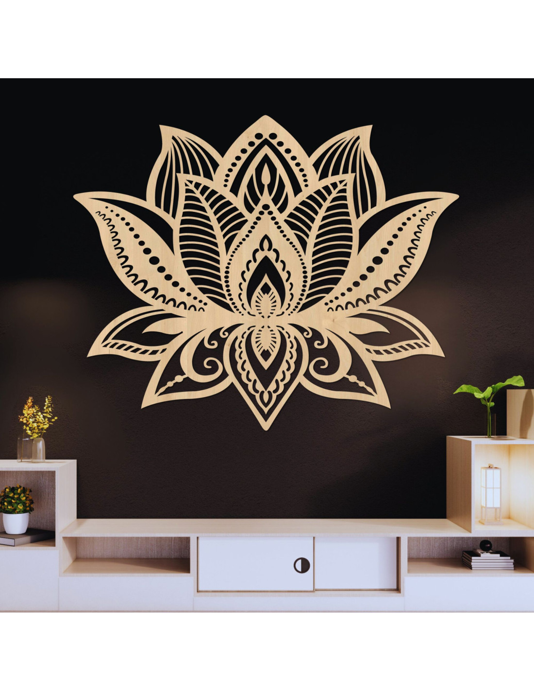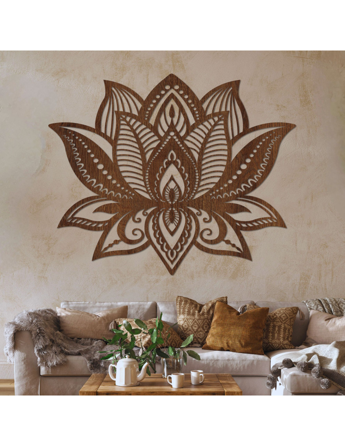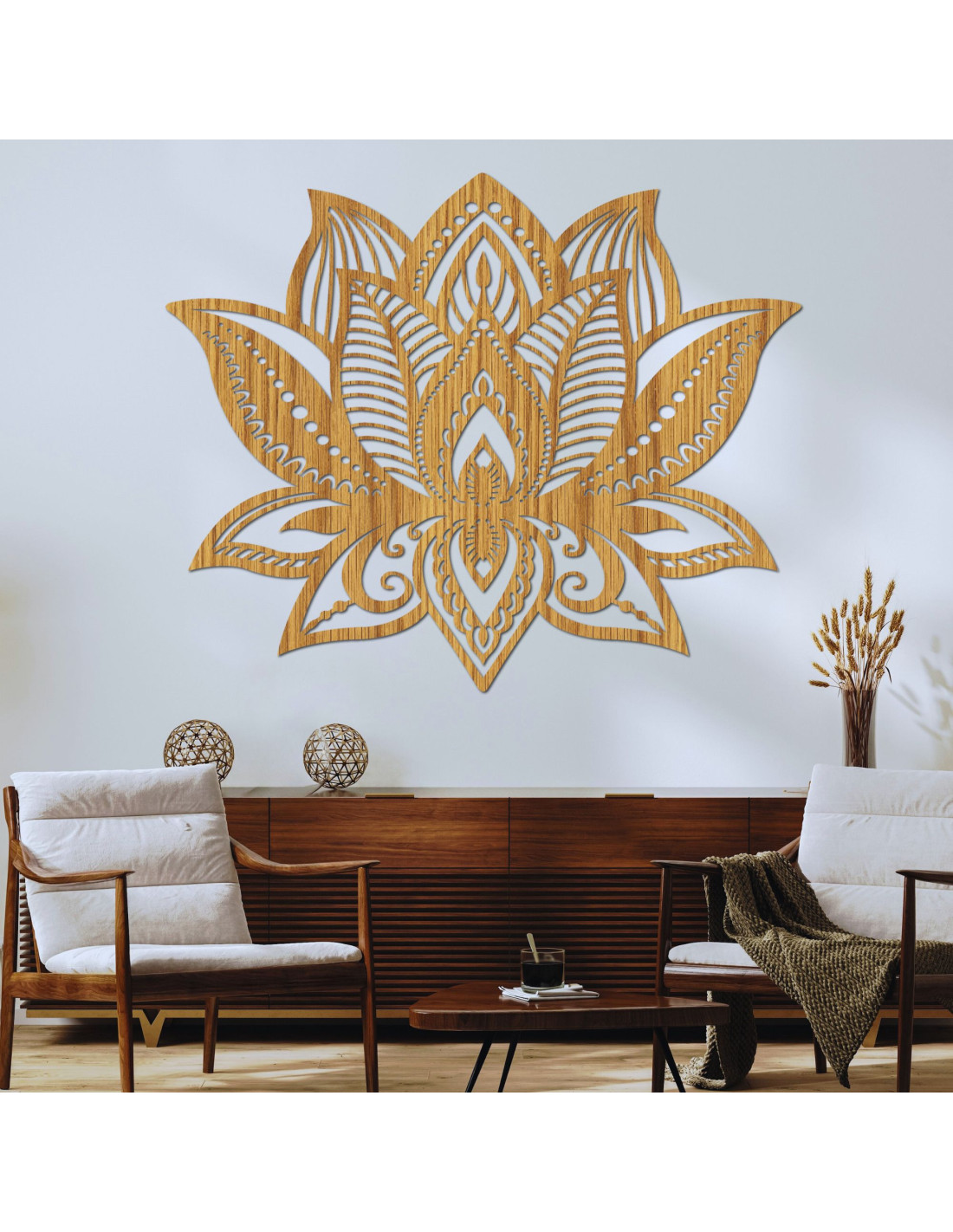 Ez a fából készült LOTONIS lótuszvirág dekoráció az esztétikai eleganciát a spirituális mélységgel ötvözi.