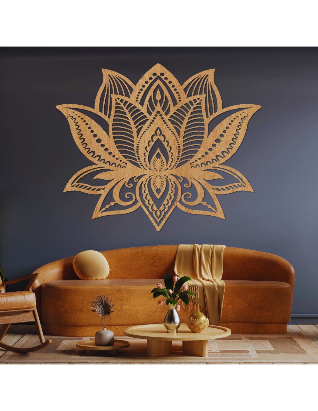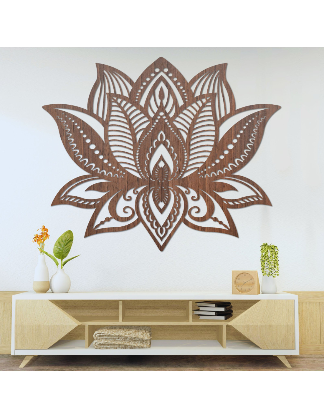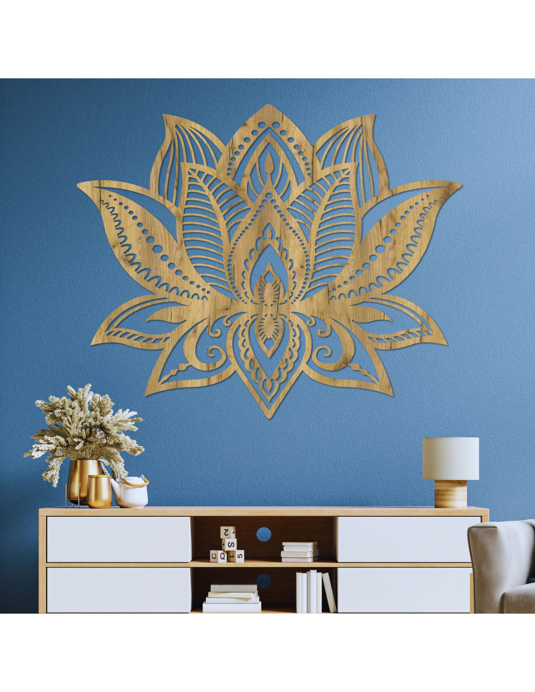 Ez a fából készült LOTONIS lótuszvirág dekoráció az esztétikai eleganciát a spirituális mélységgel ötvözi.