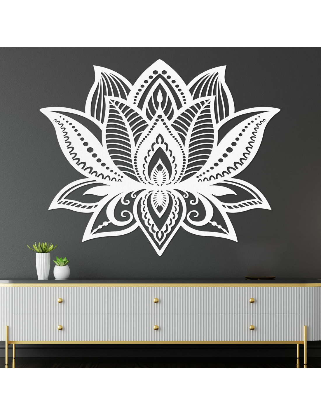 Gondosan faragott mintái szimmetrikus lótuszvirágot alkotnak, amely harmóniát, békét és egységet fejez ki.