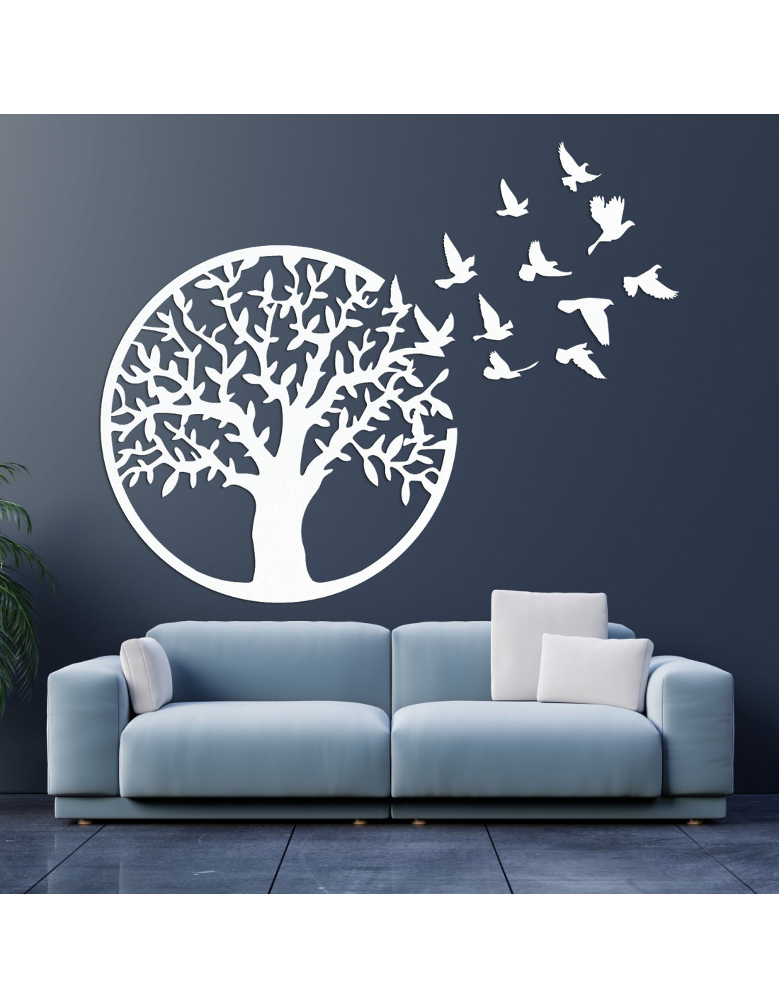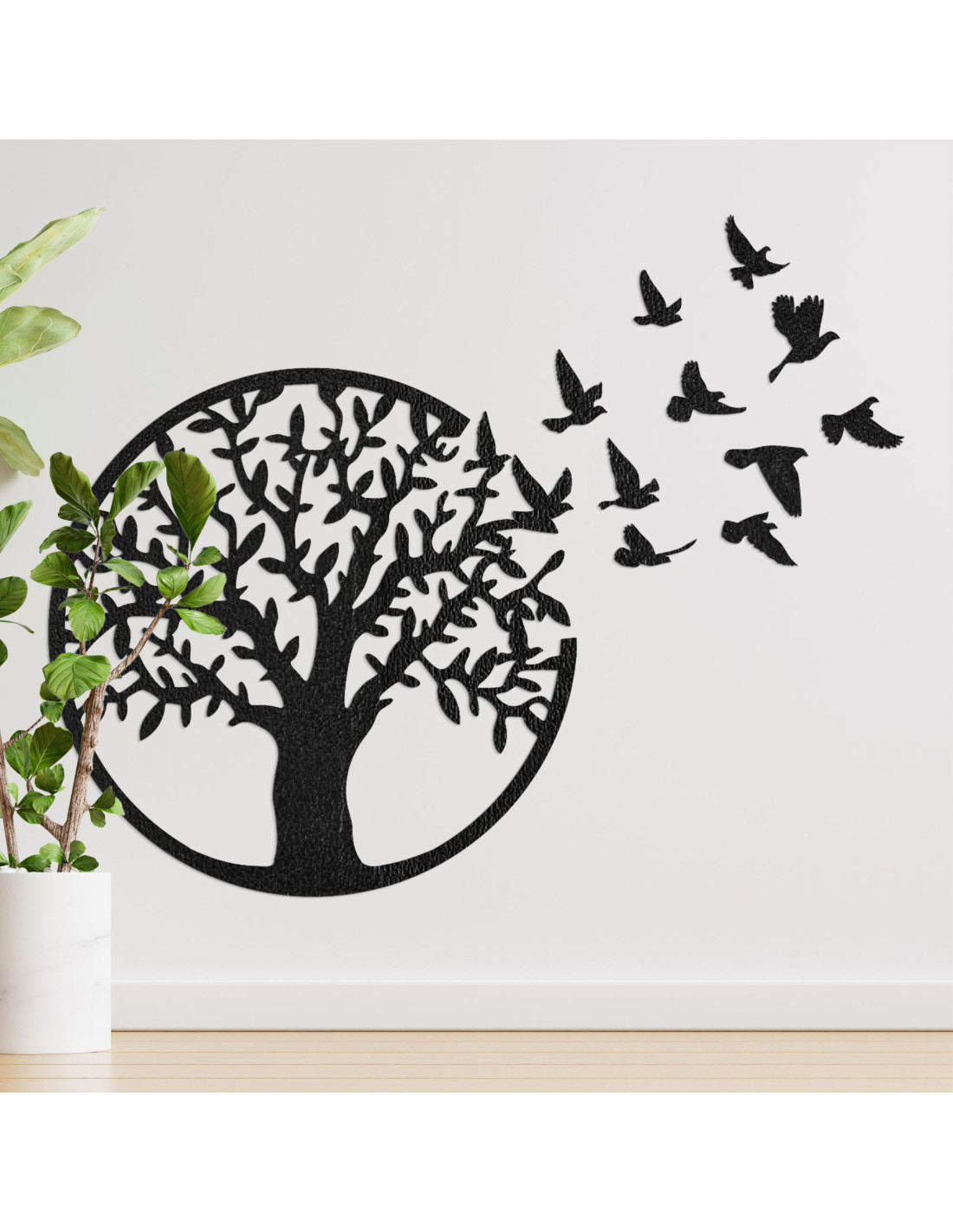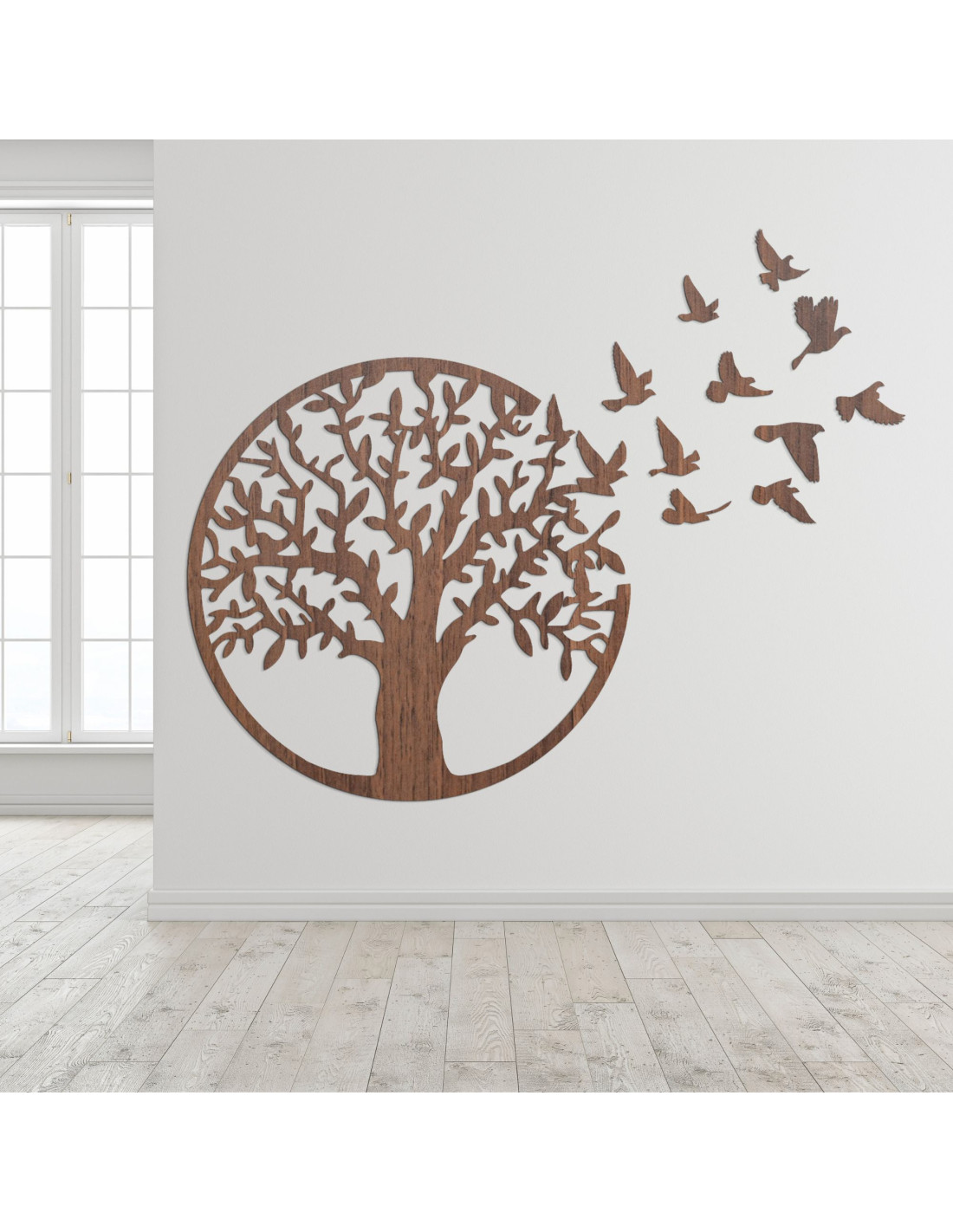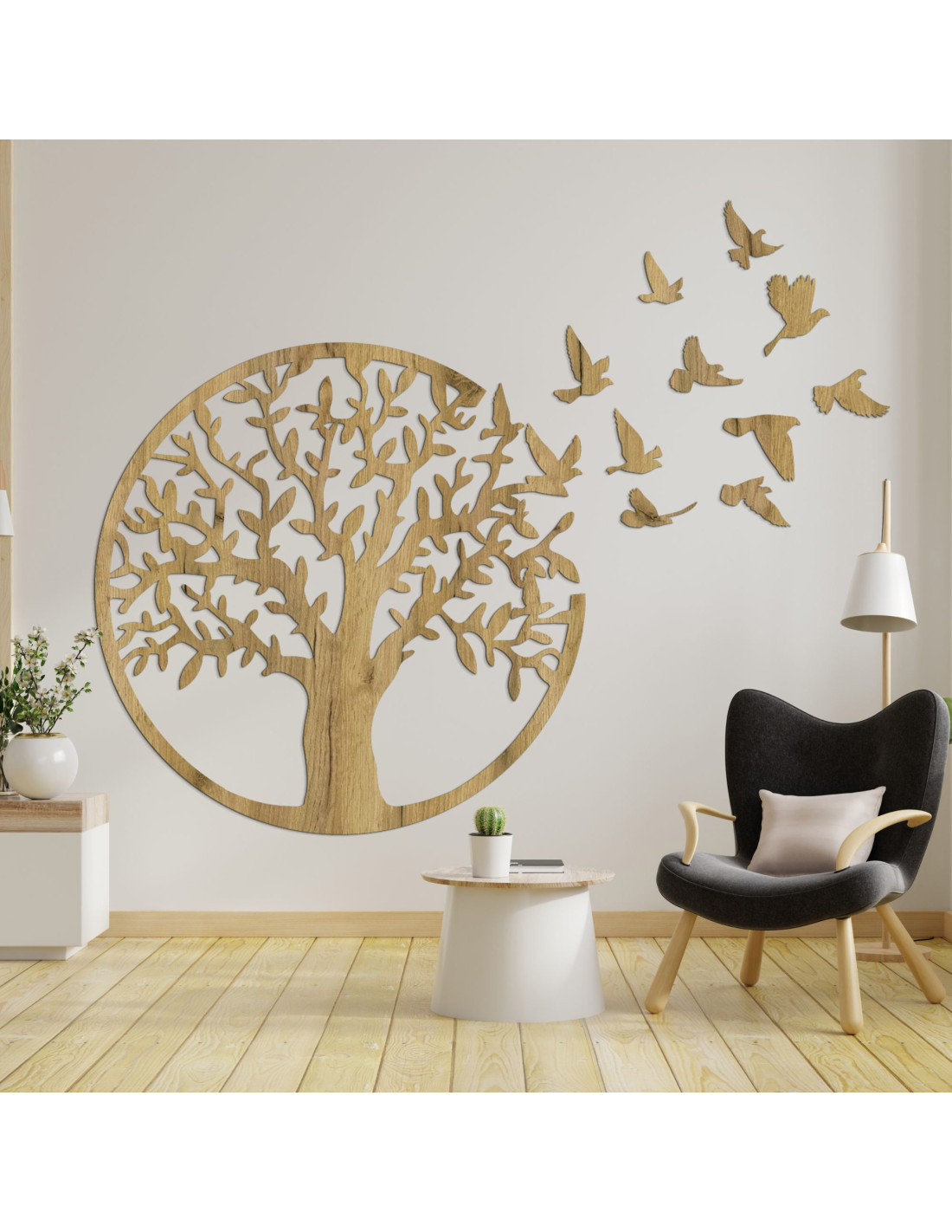 Dobja fel belső terét egy elegáns fából készült fali dekorációval, amely egy fa szépségét örökíti meg szárnyaló madarakkal. Ez az egyedi műalkotás tökéletes azok számára, akik modern és természetes hangsúlyokat keresnek terükben.