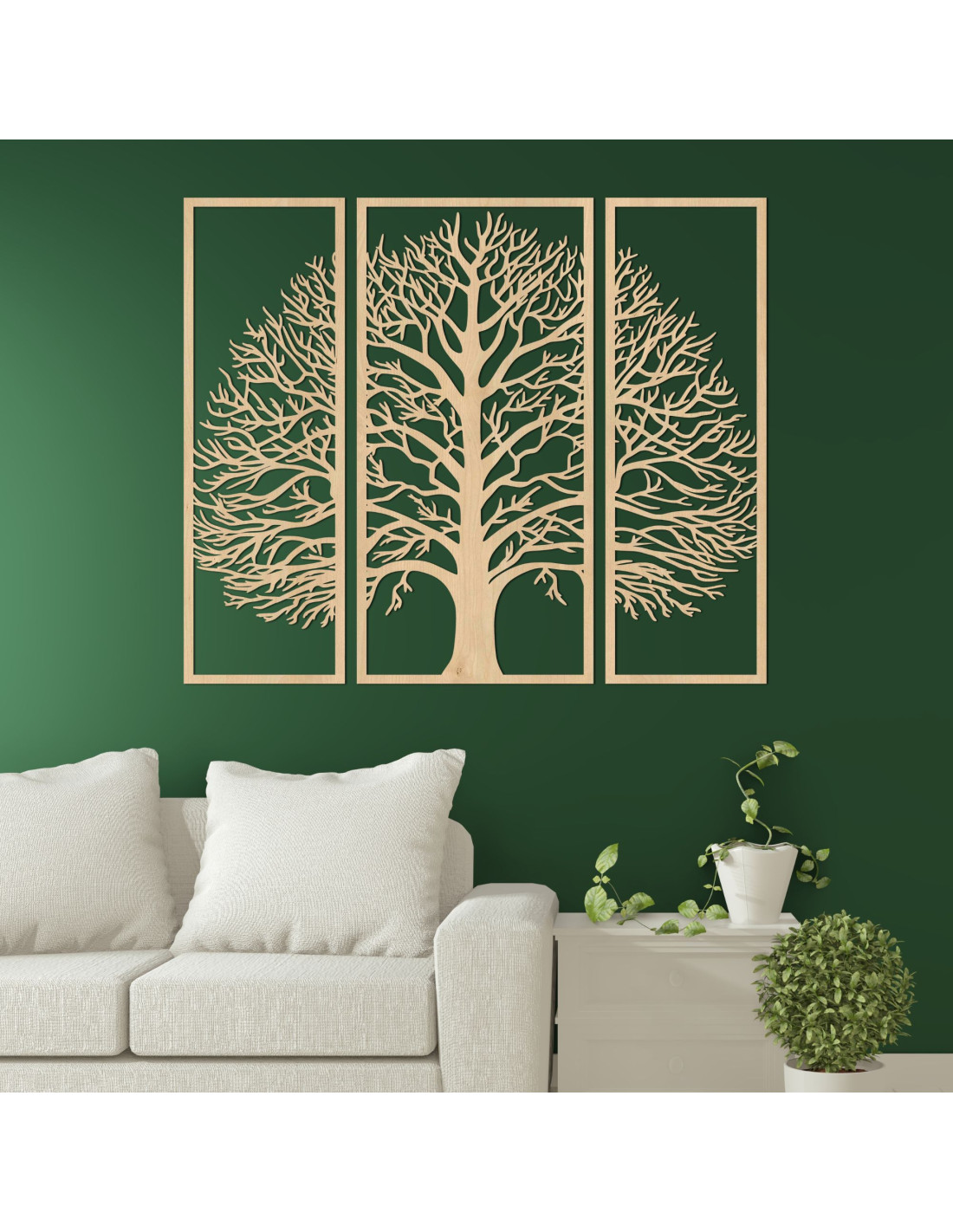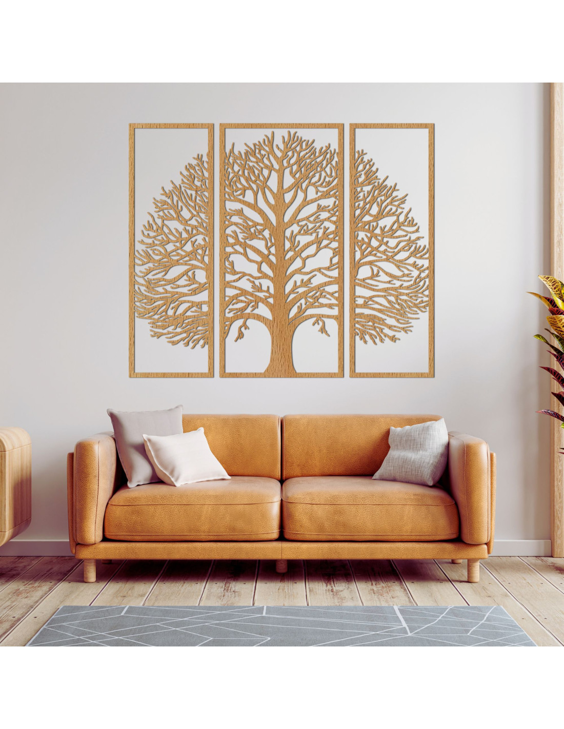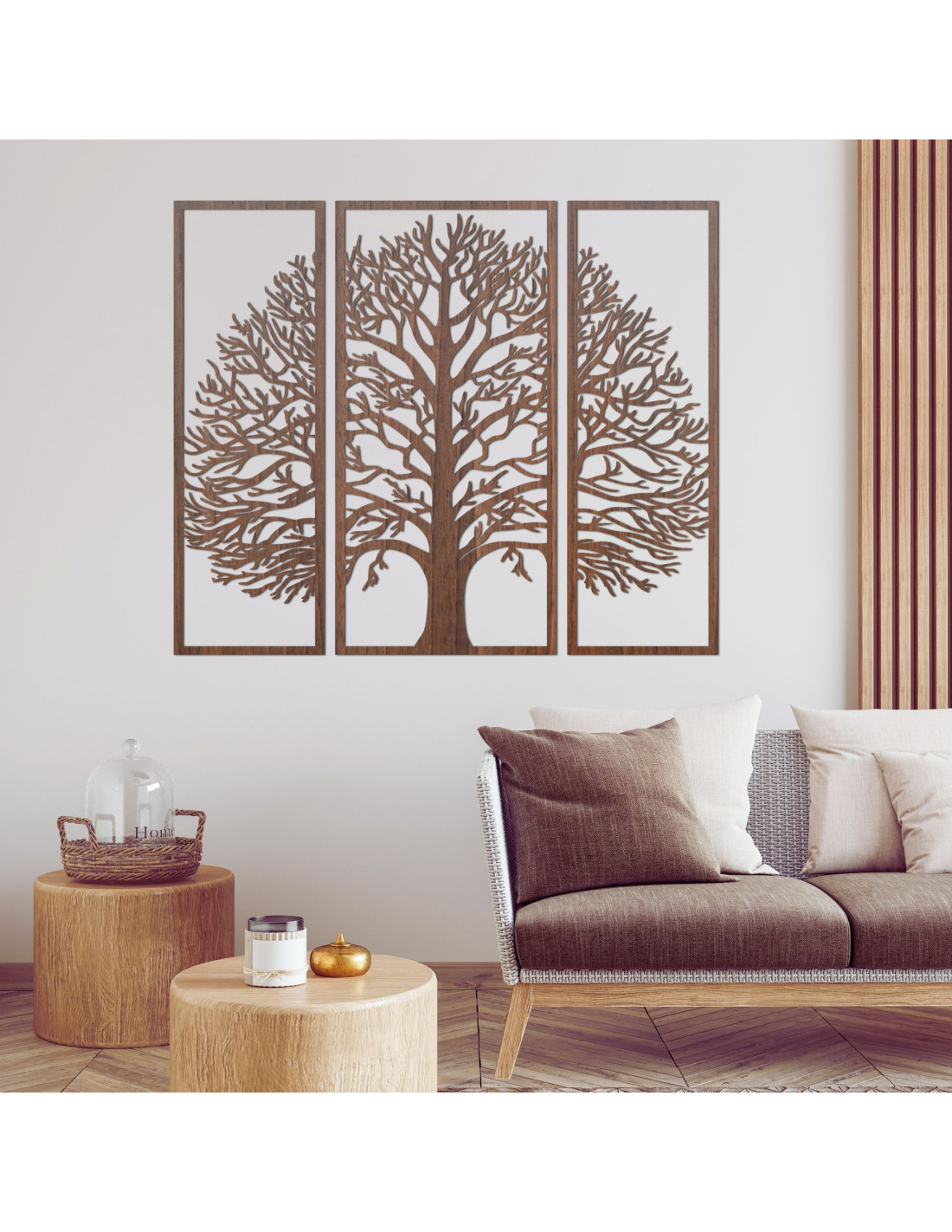 A háromrészes, fából készült Életfa dekoráció egy elegáns és időtlen kiegészítő, amely harmóniát, békét és stílust visz otthonába.