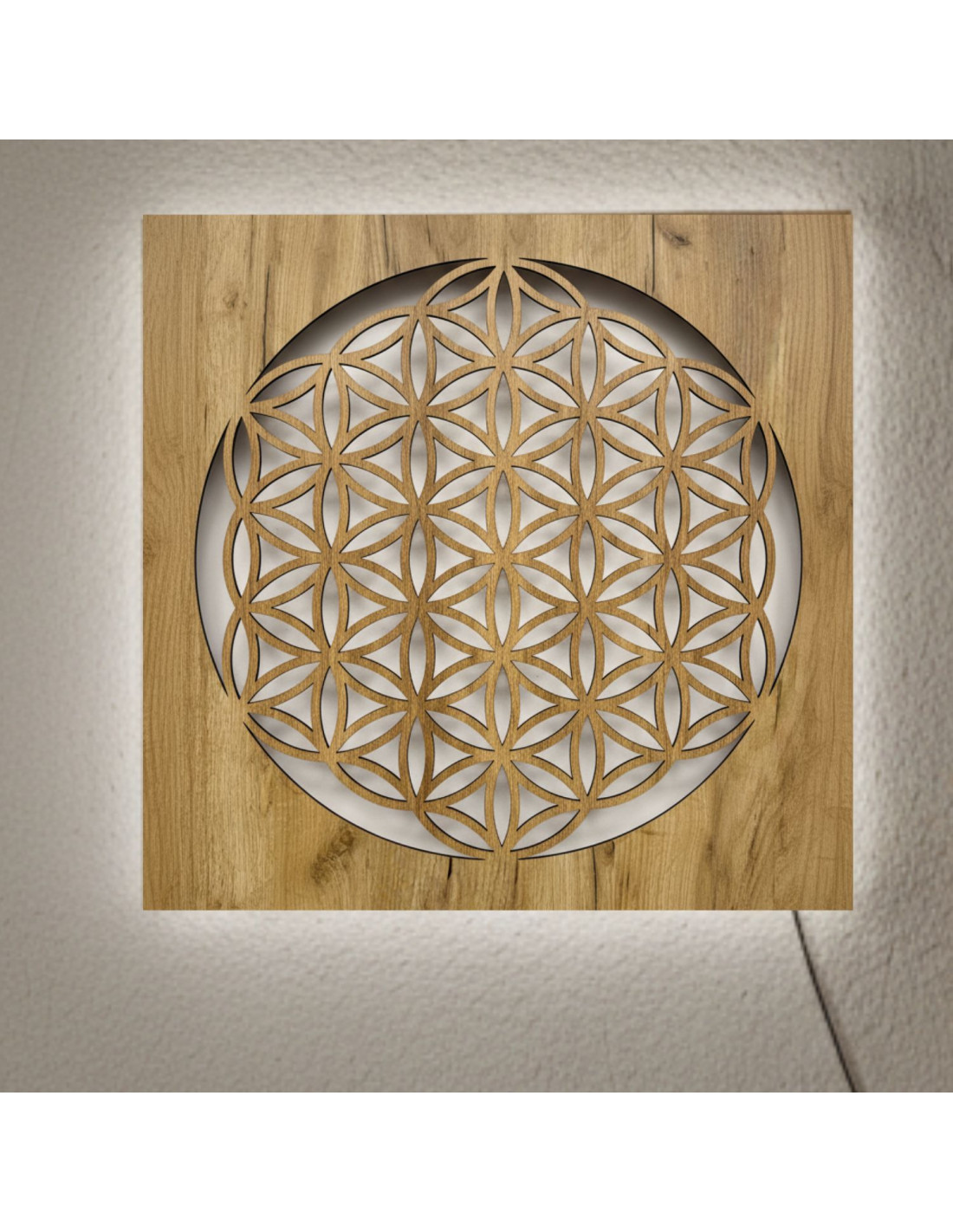 Háttérvilágítású fa festmény, Életvirág – LED mandala faldekoráció | MONEN