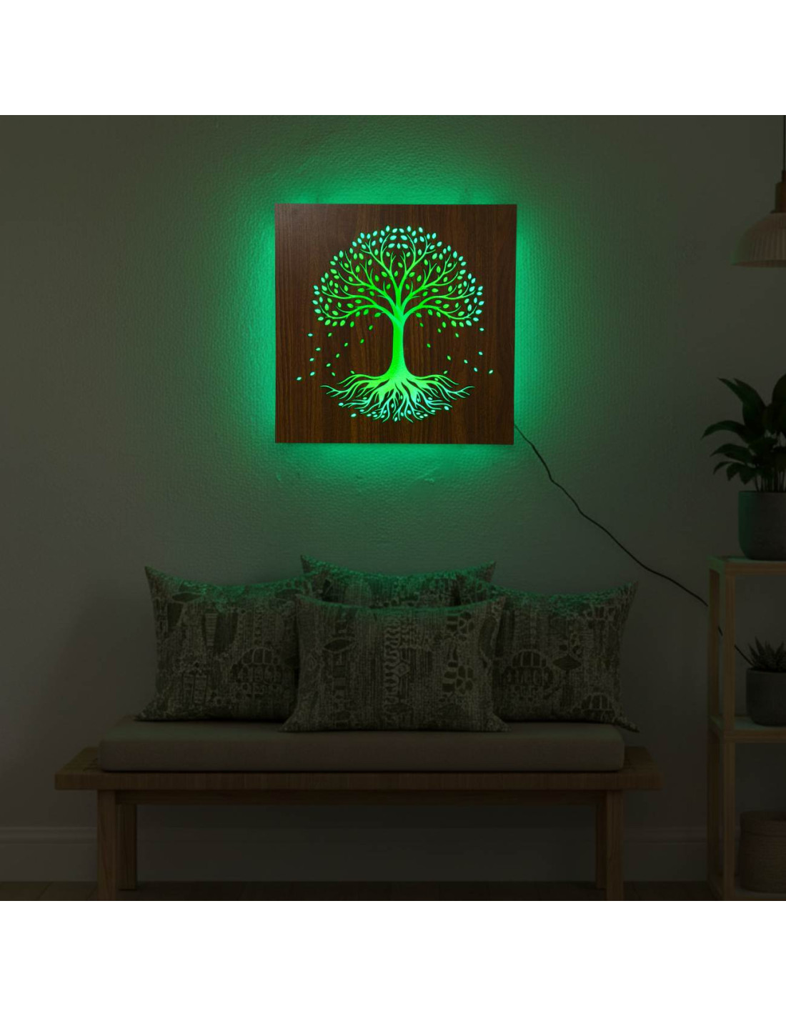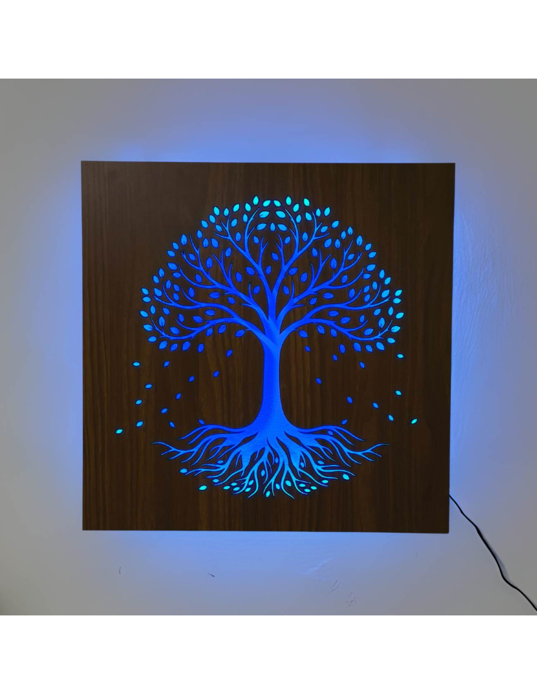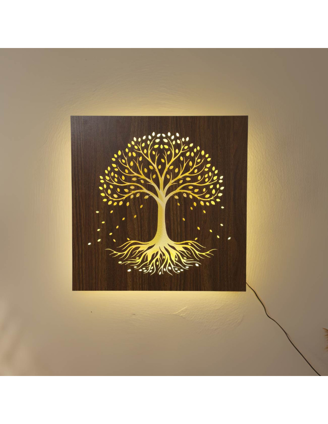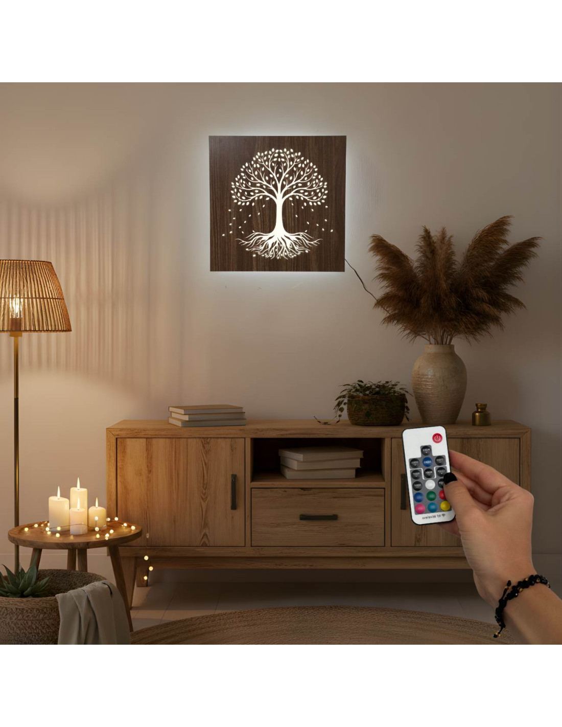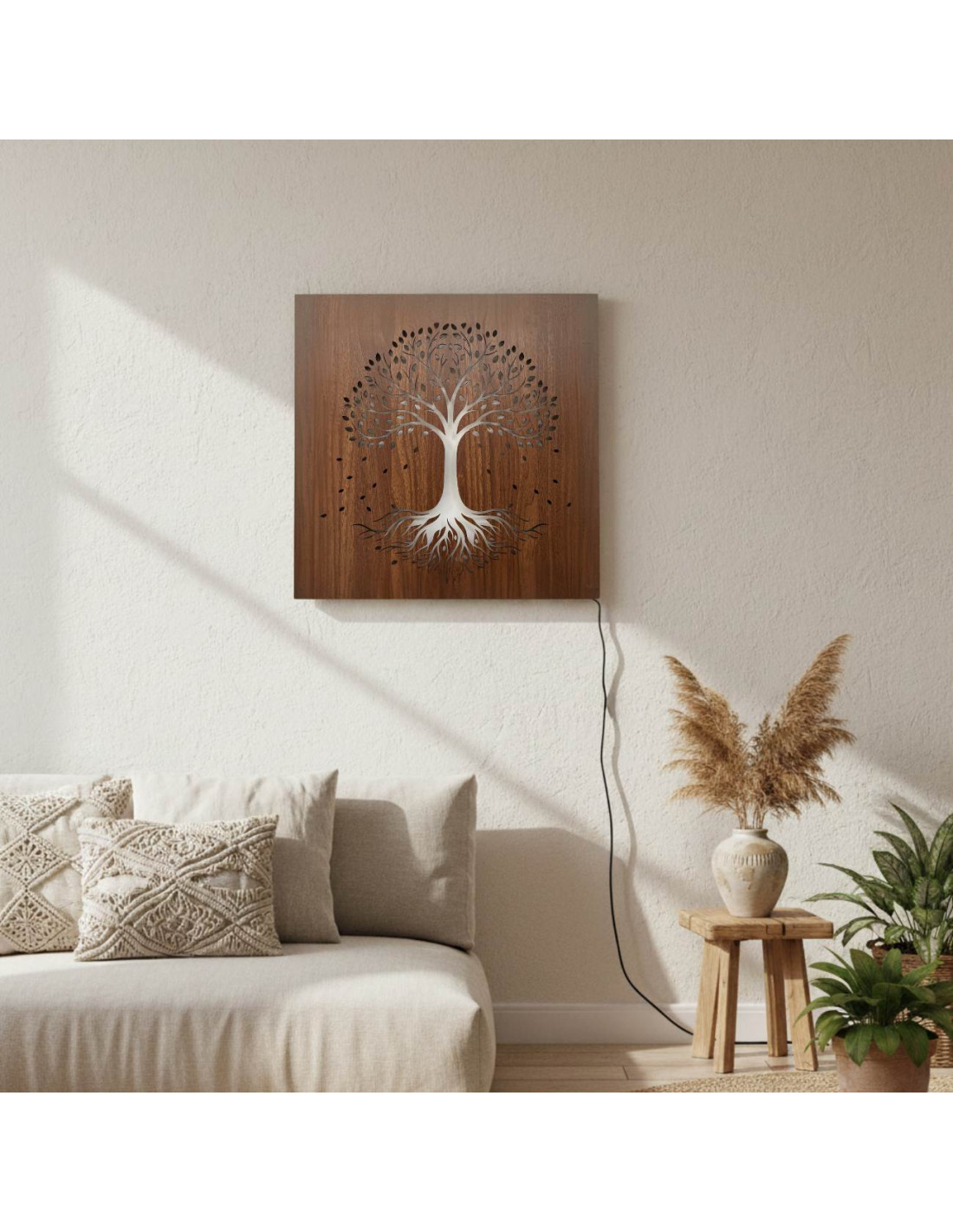 Háttérvilágítású fa panel Életfa - modern dekoráció