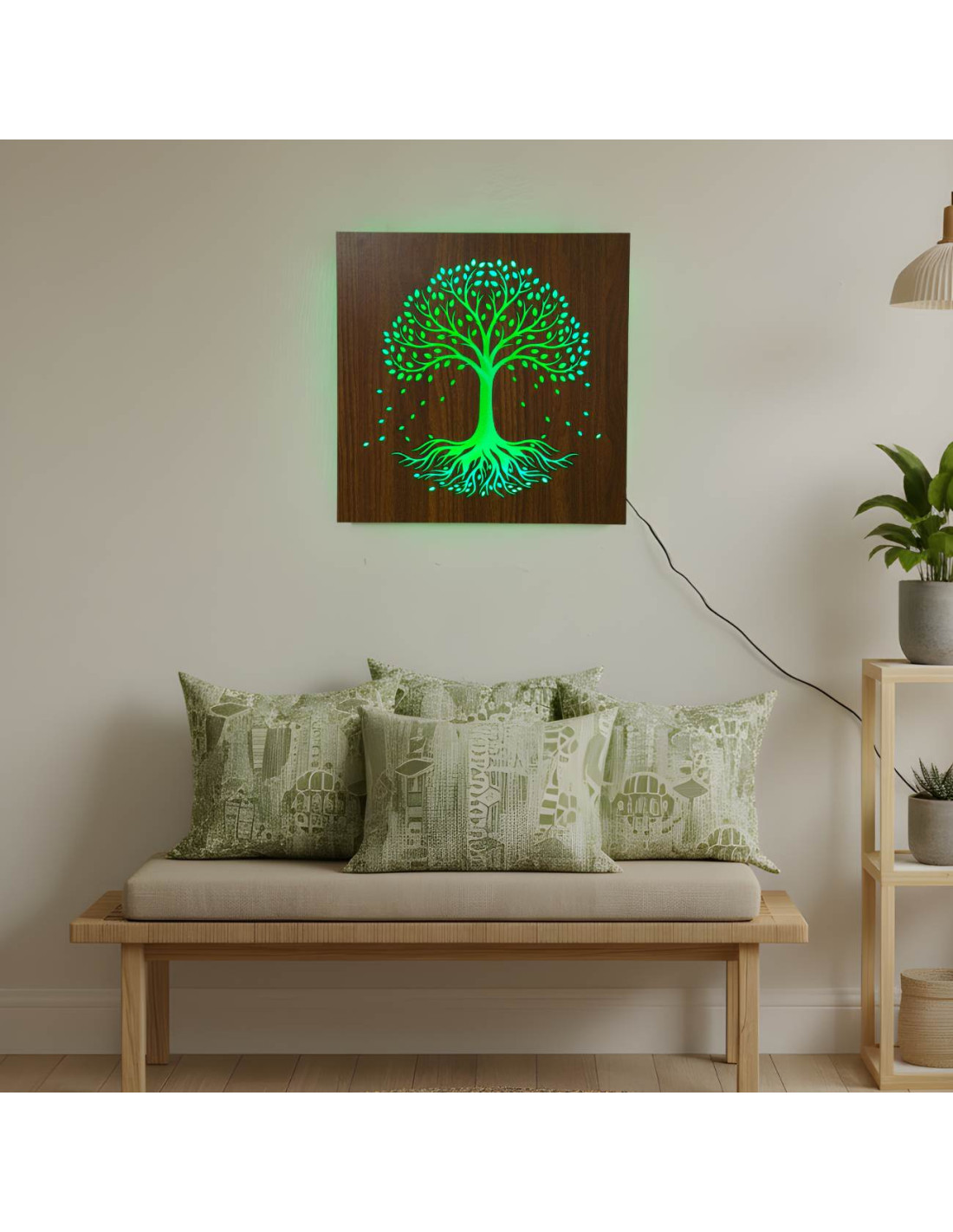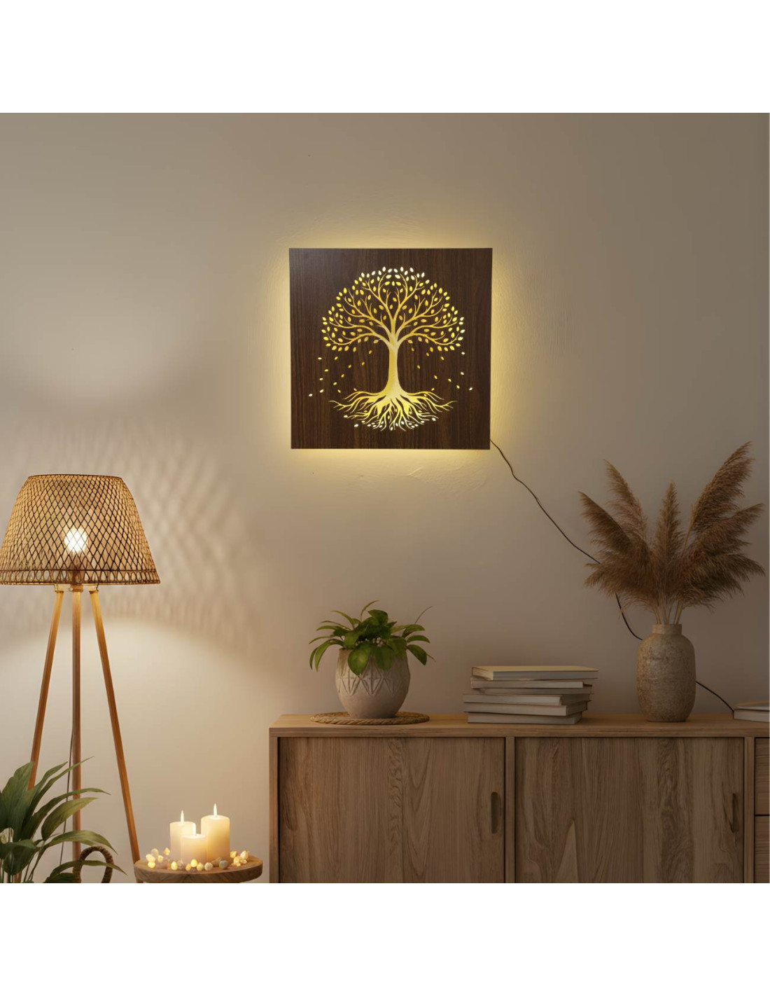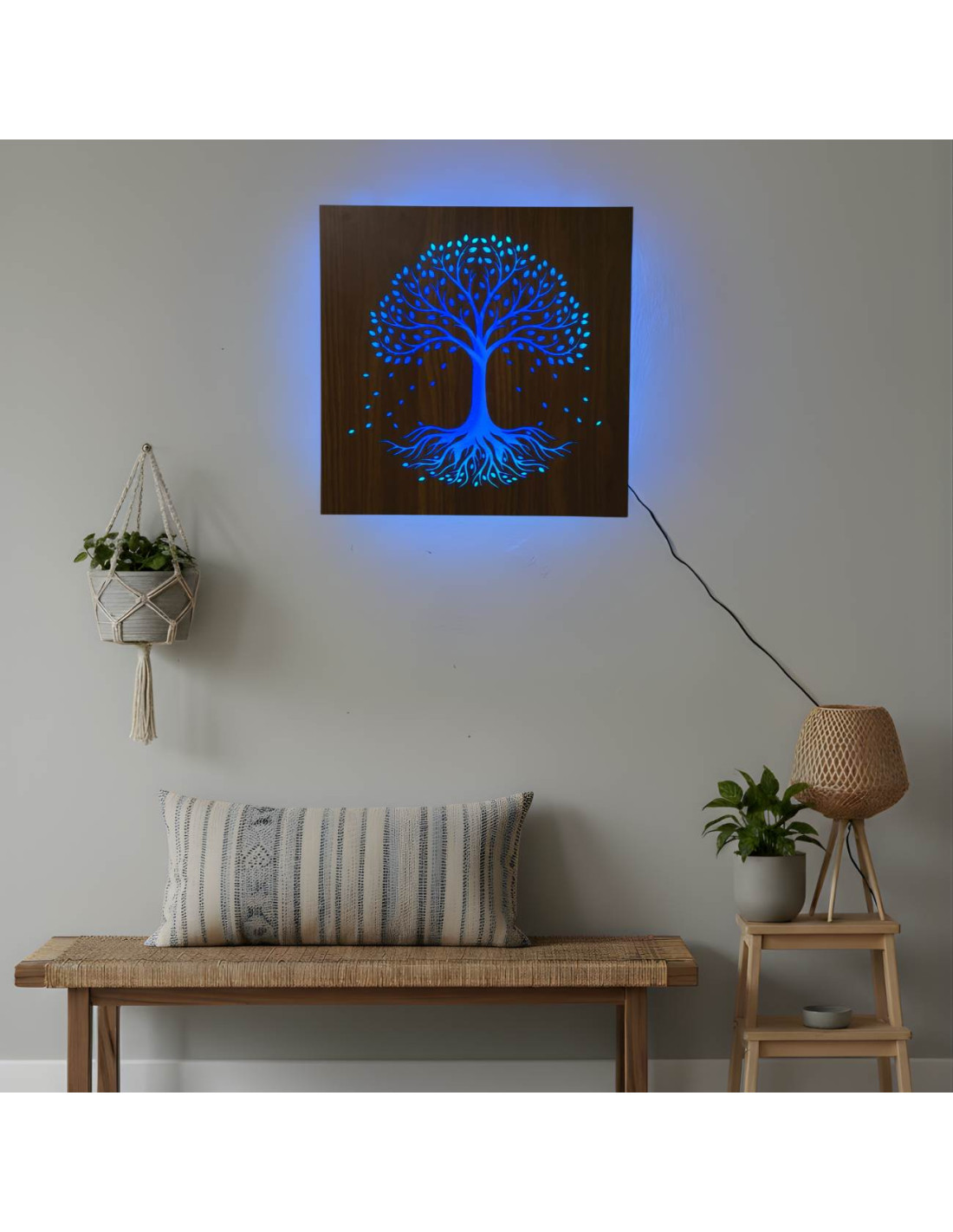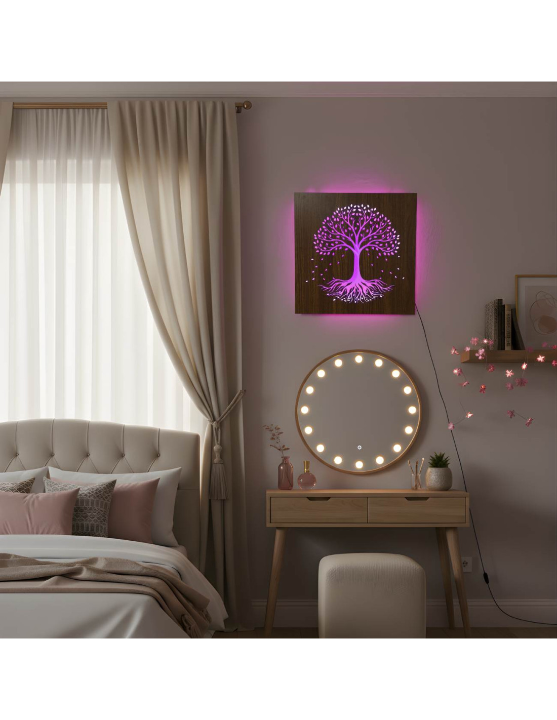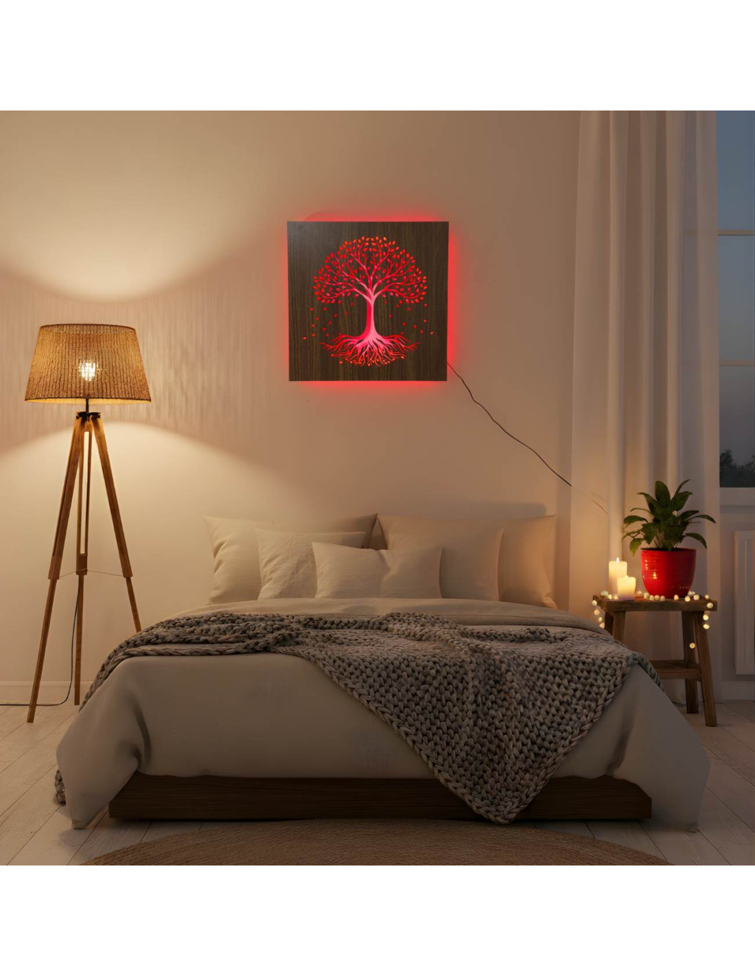 Háttérvilágítású fa panel Életfa - modern dekoráció