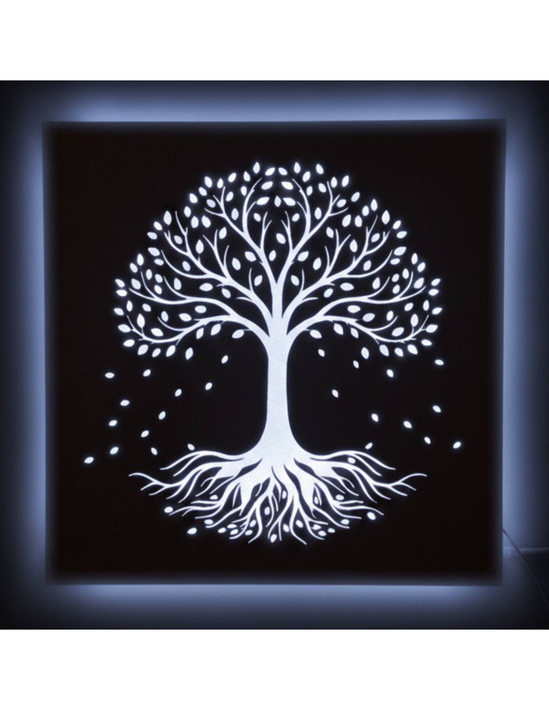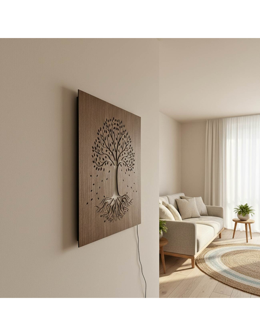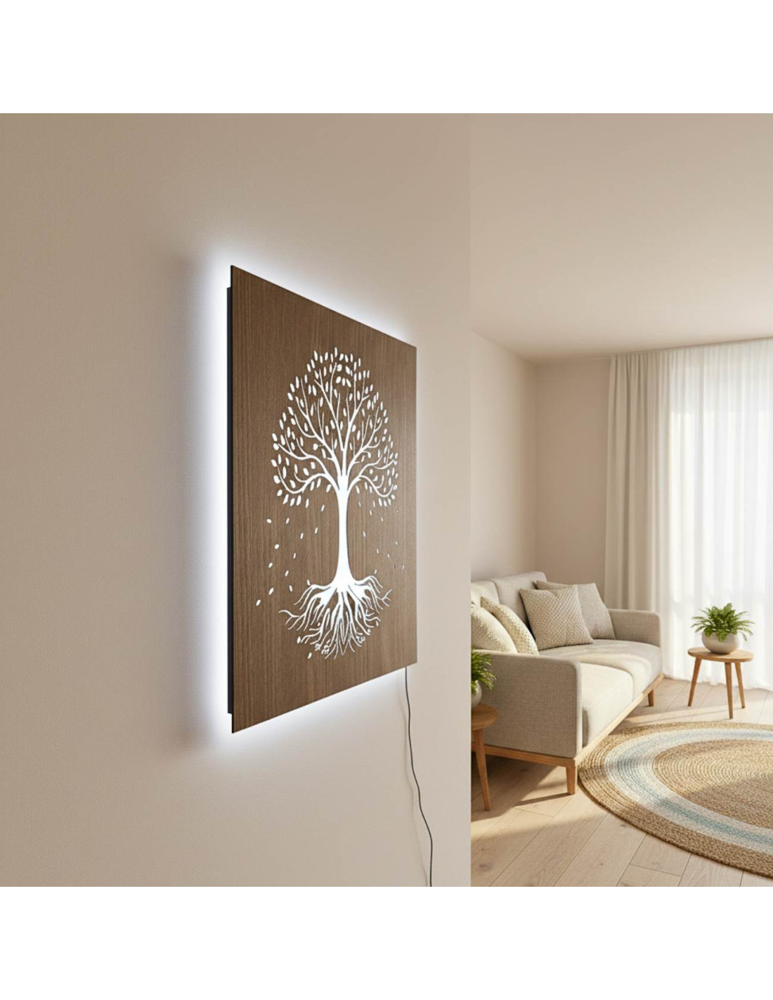 Az eredeti , háttérvilágítású, fából készült festmény - az Életfa - a természetes anyagok, a modern dizájn és a finom LED-világítás kombinációját testesíti meg. Ez az egyedi darab harmonikus hangulatot teremt, amely bármilyen belső teret otthonossá varázsol - a nappalitól és a hálószobától kezdve az irodán át a meditációs térig .