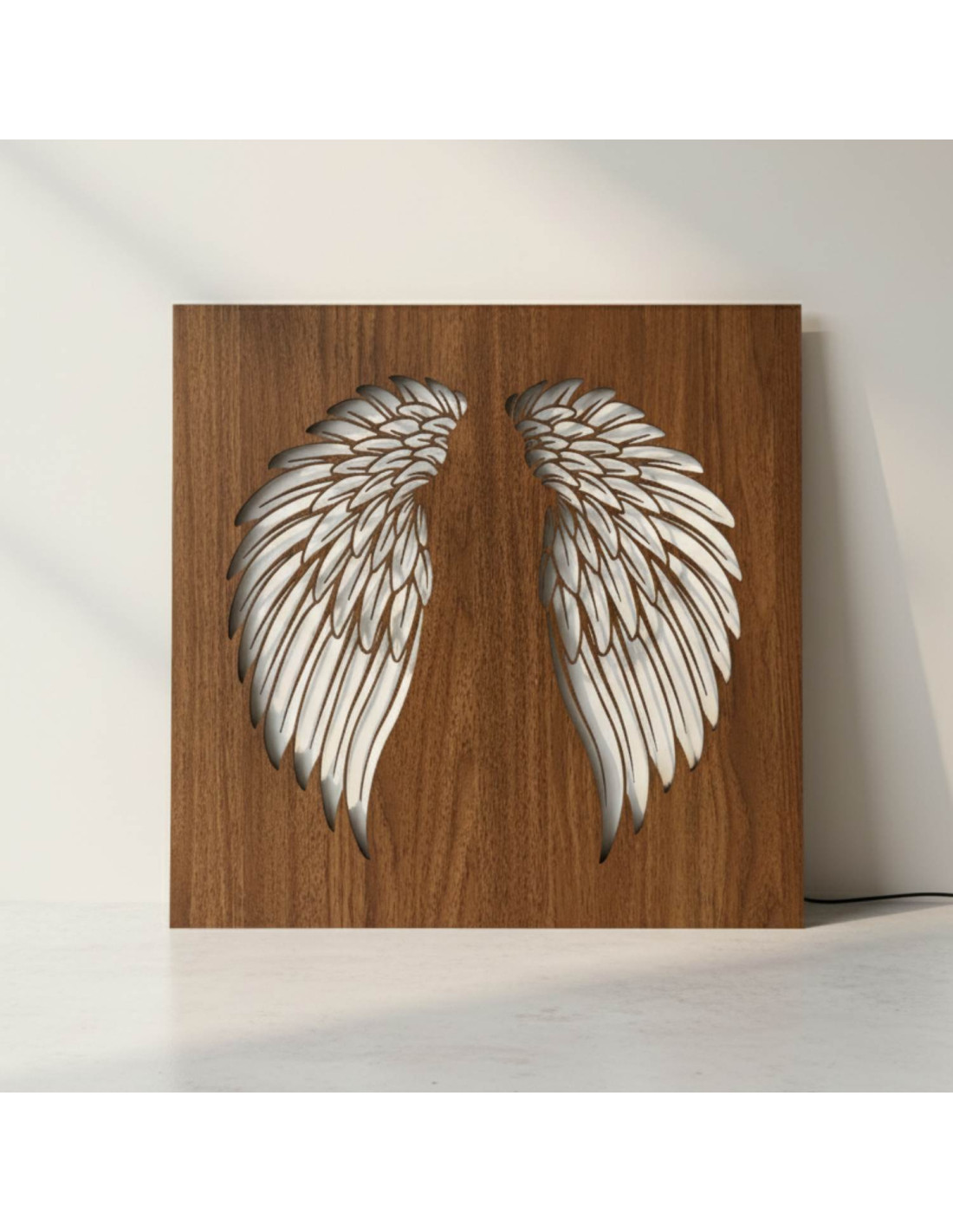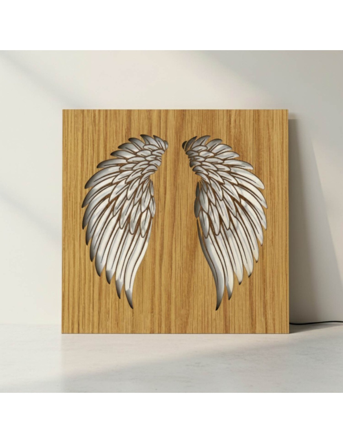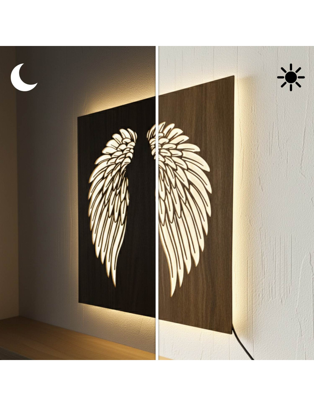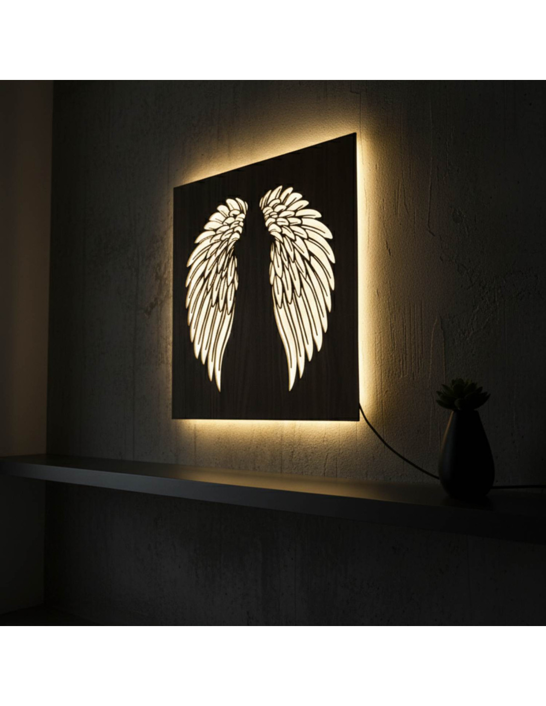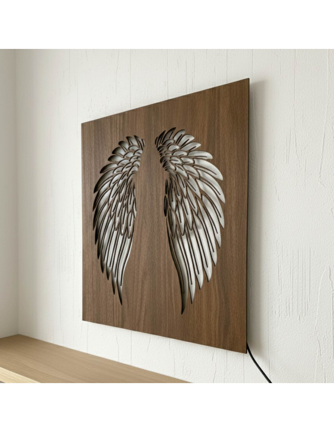 Az eredeti , háttérvilágítással ellátott, fából készült festmény – angyalszárnyak – a fa természetes szépségét, a modern dizájnt és a finom LED-világítást ötvözi egy egyedi műalkotásban. Ez az elegáns darab békét, fényt és harmóniát hoz a térbe, otthonossá varázsolva minden belső teret – a nappaliktól és hálószobáktól kezdve a reprezentatív irodákig .