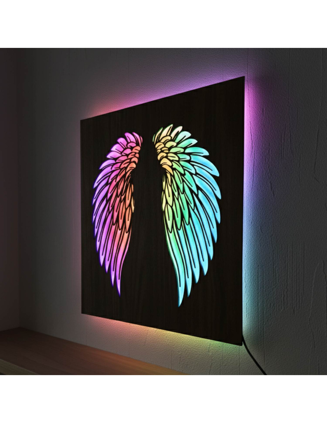 Fa háttérvilágítású LED kép – Angyalszárnyak a falon