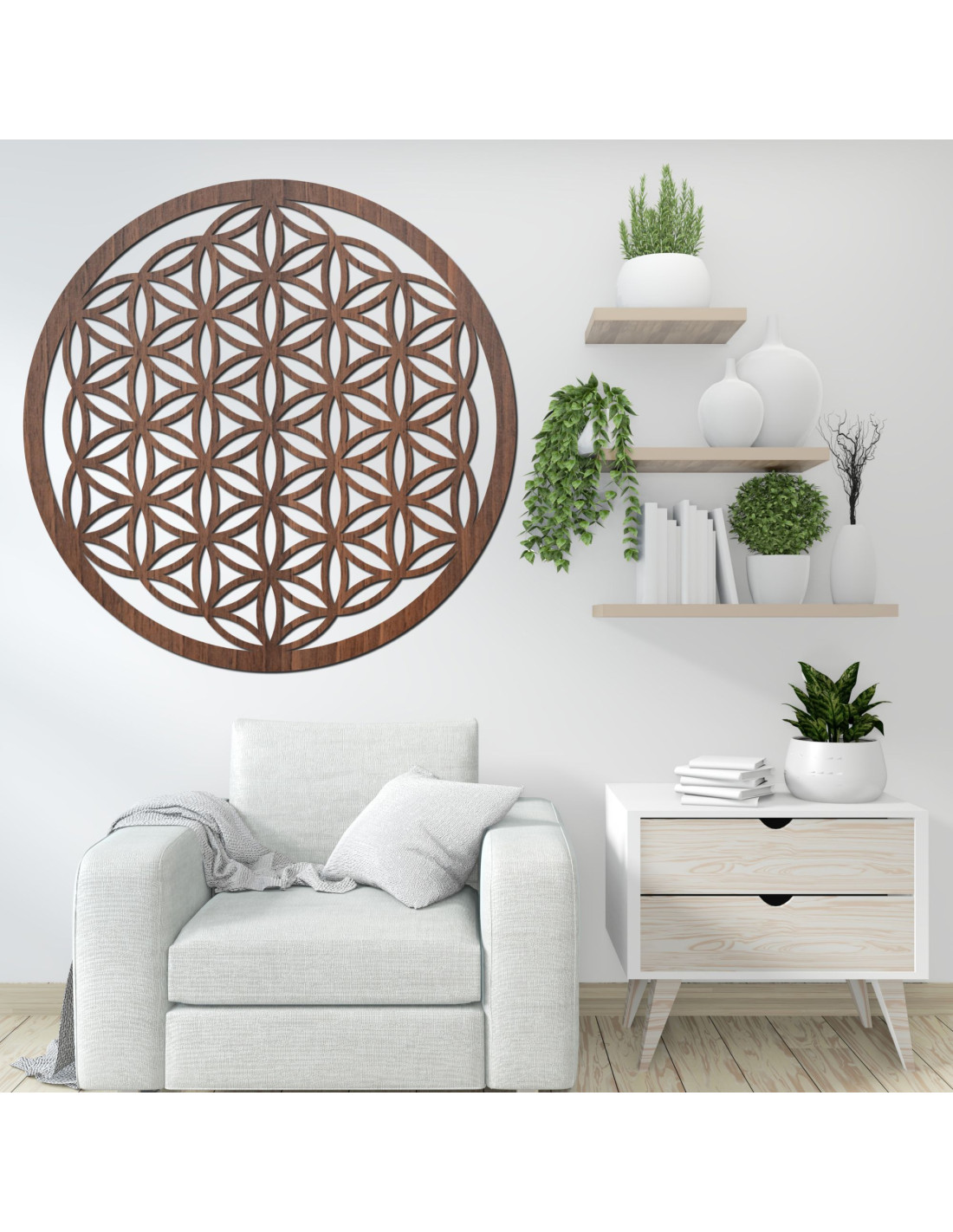 Ez a fából készült mandala, az Életvirág ideális ajándék mindazoknak, akik szeretik a természet, az esztétika és a szimbolizmus kapcsolatát . Egyensúlyt, békét és pozitív energiát visz a térbe. Tökéletes ajándék beköltözésre, esküvőre vagy születésnapra .