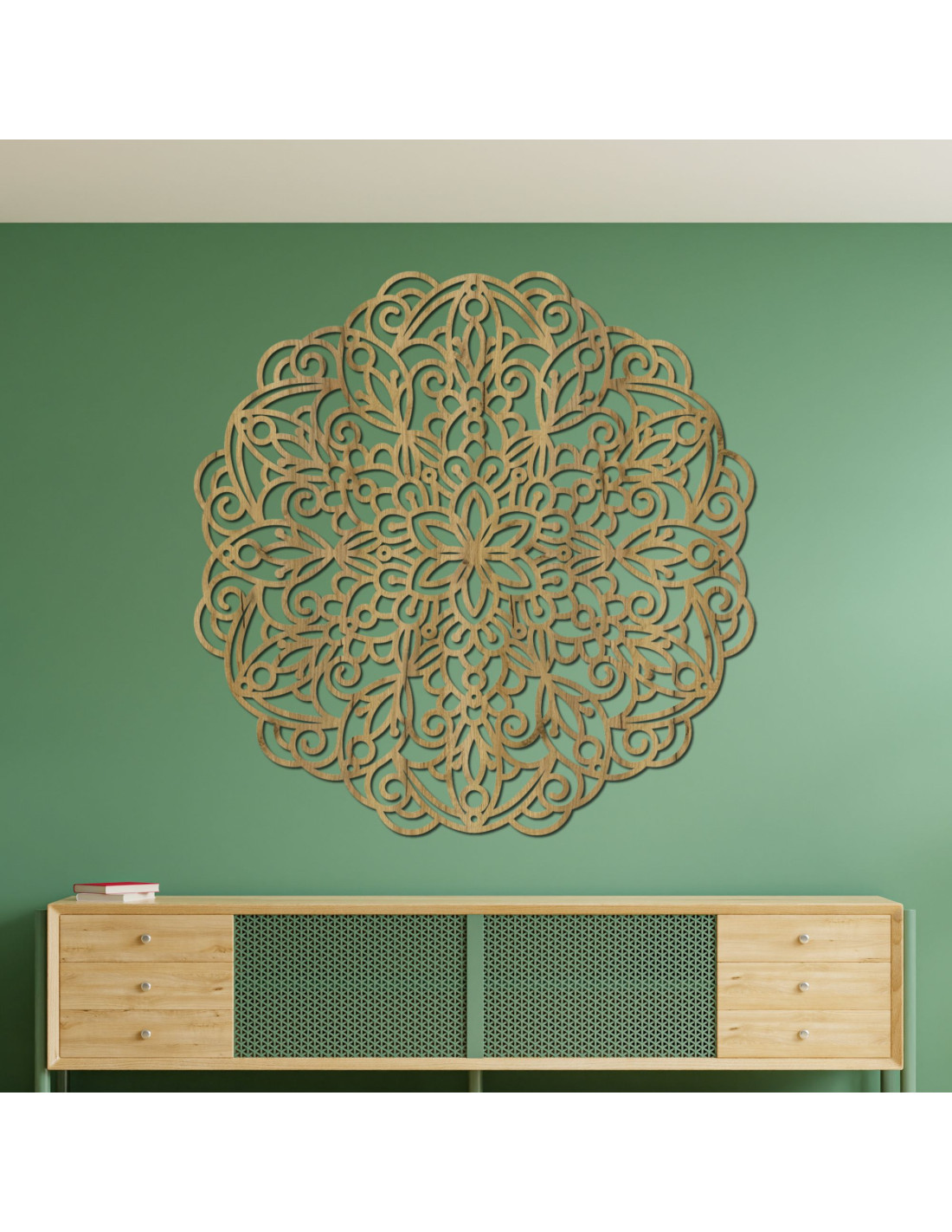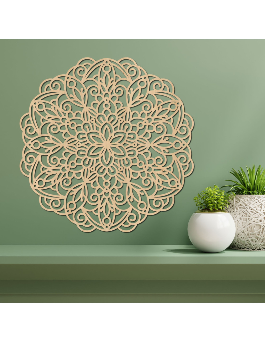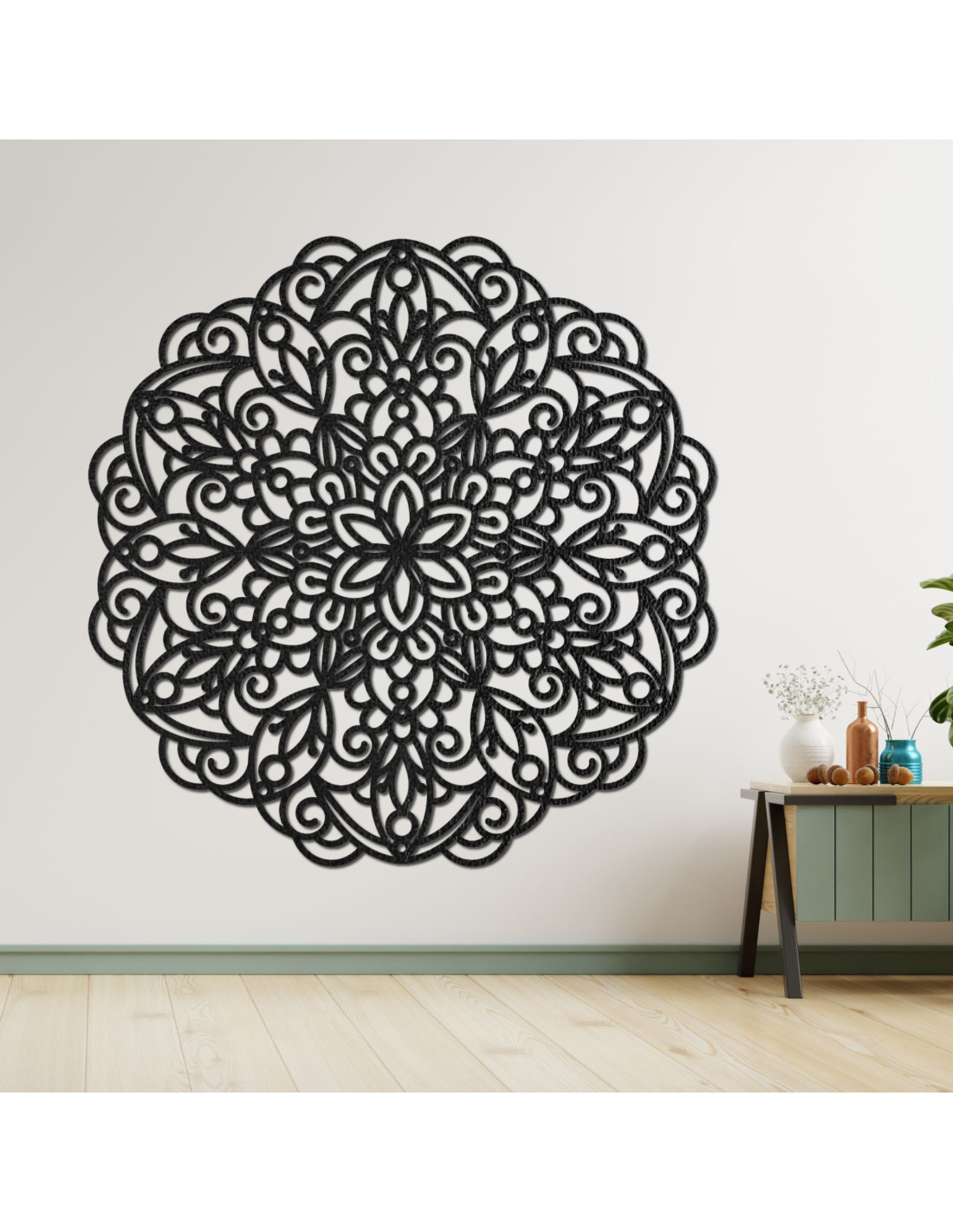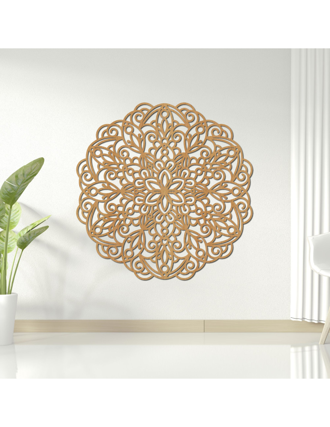A fa mandala több, mint egy gyönyörű faldekoráció - a harmóniát, a stabilitást és a családi kötelékek erejét szimbolizálja. A mandalák pozitív energiát és egyensúlyérzetet hoznak otthonába. Ez az egyedi kiegészítő természetes szépséget és történetet visz az enteriőrbe, ami egyedi jelleget kölcsönöz a térnek . Fa mandala falra, geometrikus virágdekorációval.