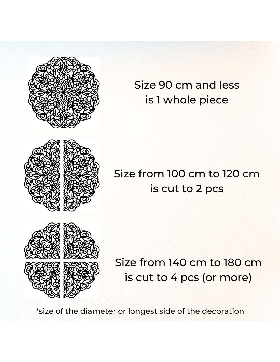 • Átmérő 30 – 90 cm : egy darabból készült mandala.