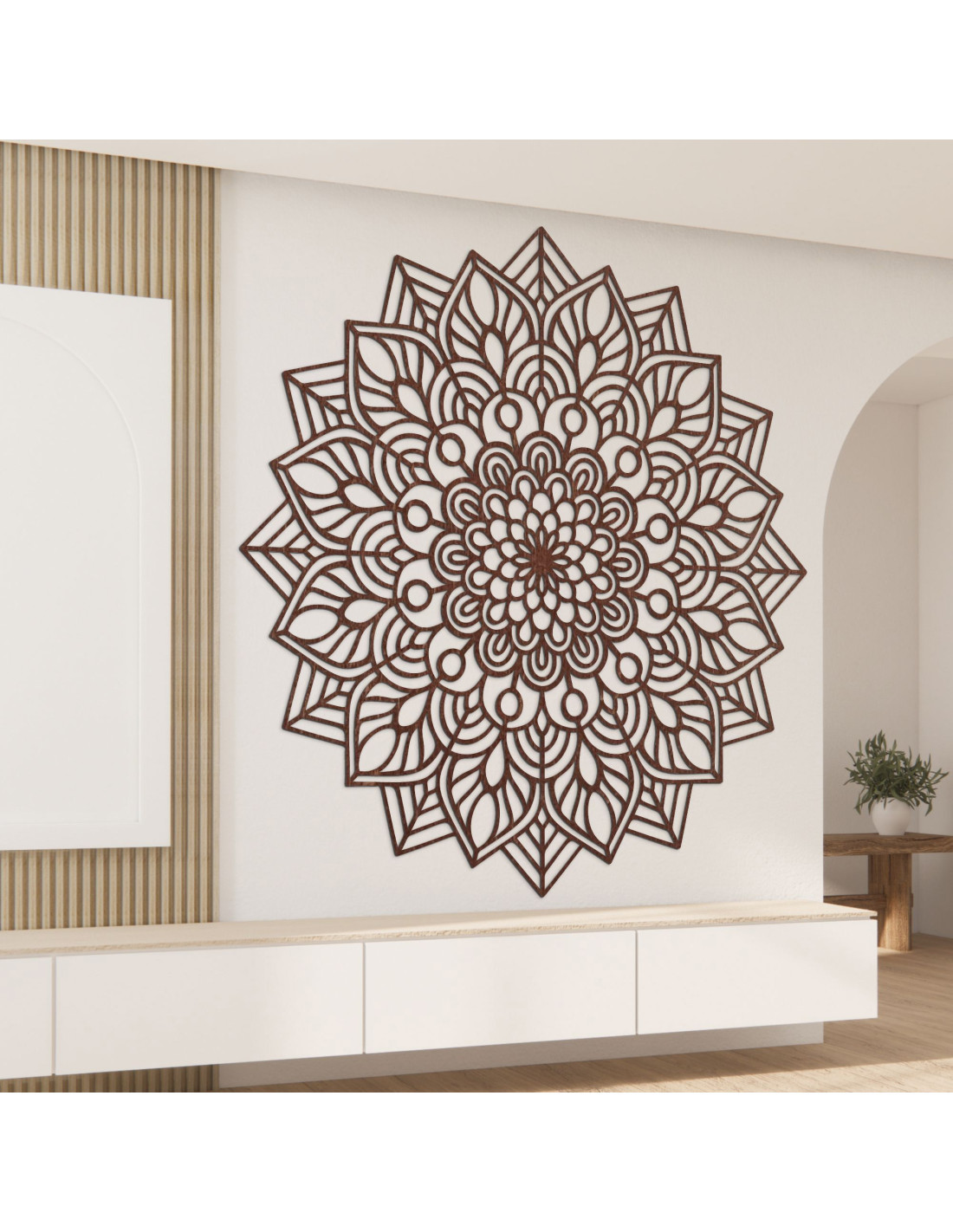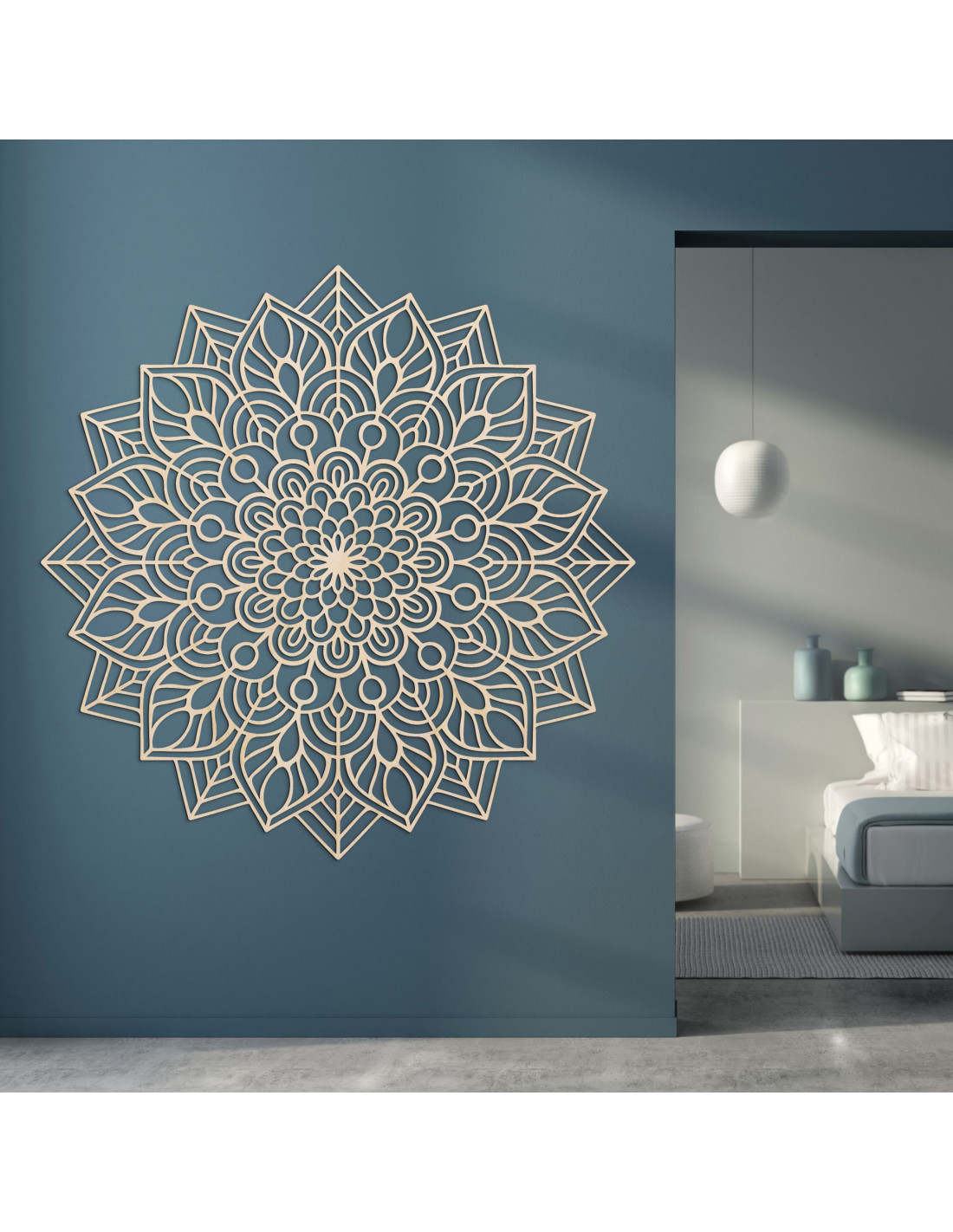 A fából készült mandala egy eredeti faldekoráció, amely harmóniával és eleganciával teli térré varázsolja a belső teret .