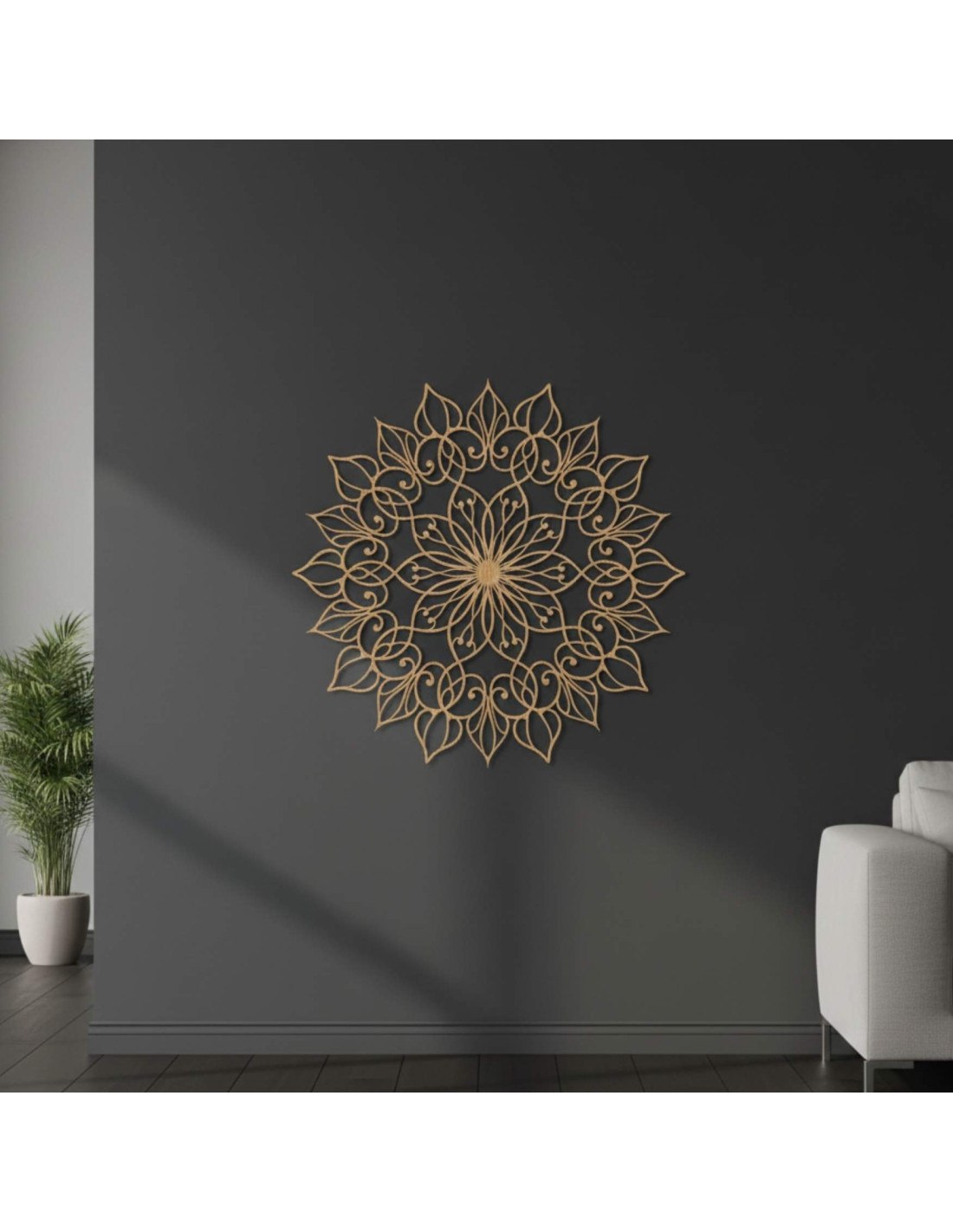 A mandala harmonikus hatású, és nyugodt, kiegyensúlyozott hangulatot teremt, ideális mind a modern, mind a minimalista terekbe.