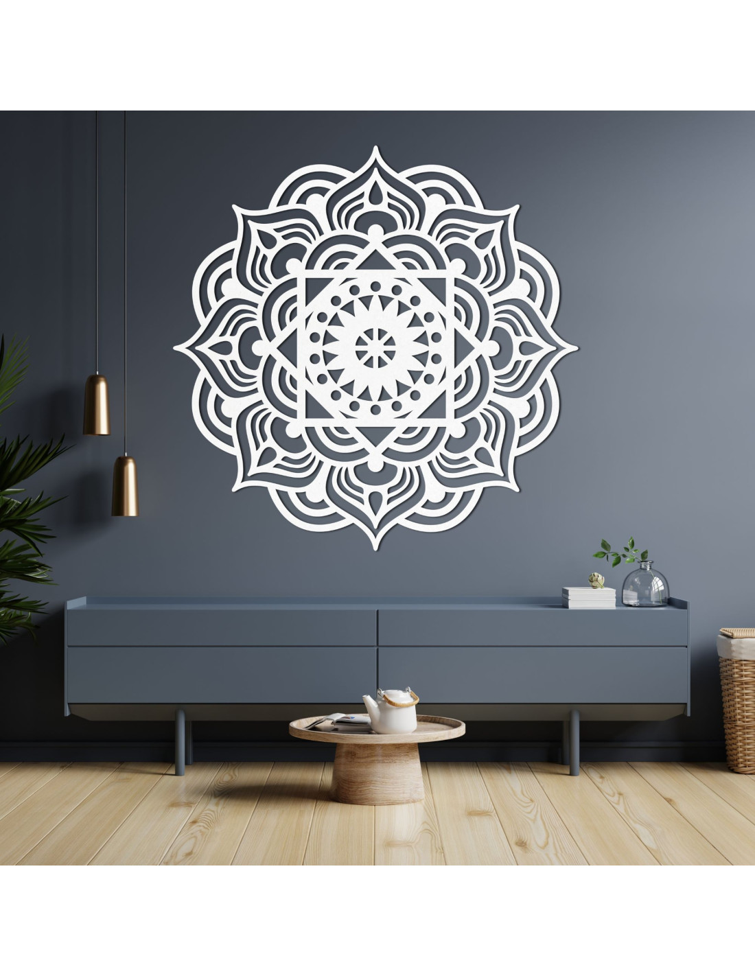 A természet ihlette, aprólékosan faragott részletek békét és egyensúlyt kölcsönöznek a térnek. A mandala tökéletesen kiegészít bármilyen belső teret, stílust és egyedi karaktert kölcsönözve neki. Nem csupán egy átlagos dekoráció - ez a mandala a szépség és a pozitív energia szimbóluma , amely otthonát harmóniával és esztétikával teli hellyé varázsolja.