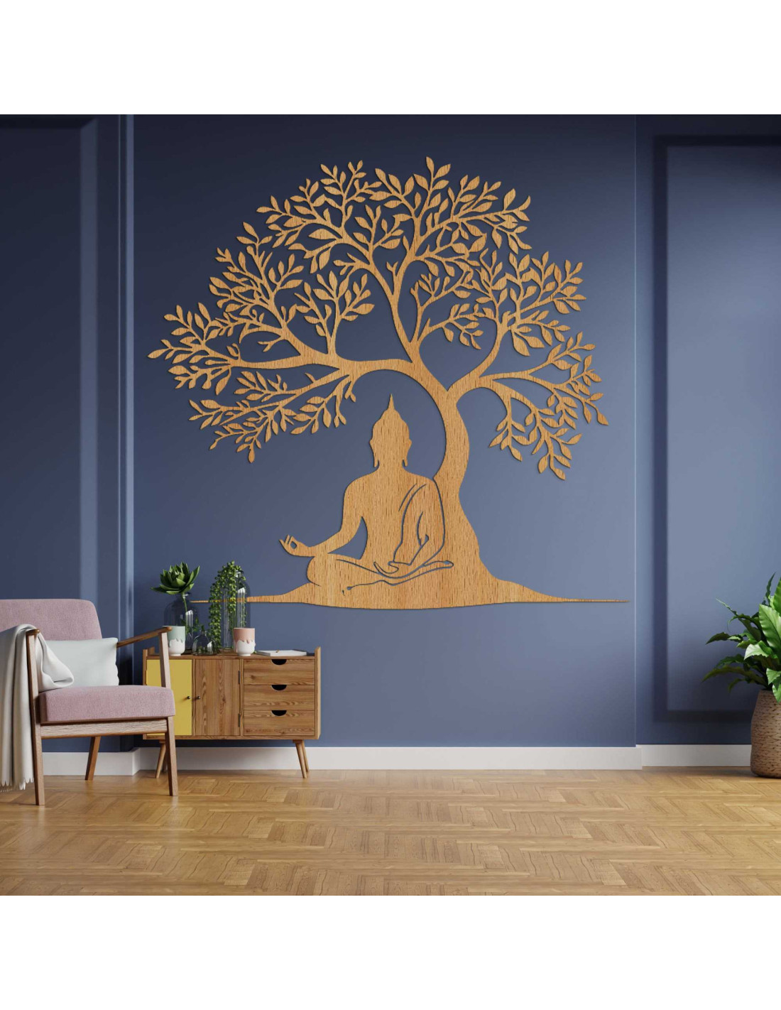 Fából készült festmény az élet fájáról és a Buddháról - MOTERO