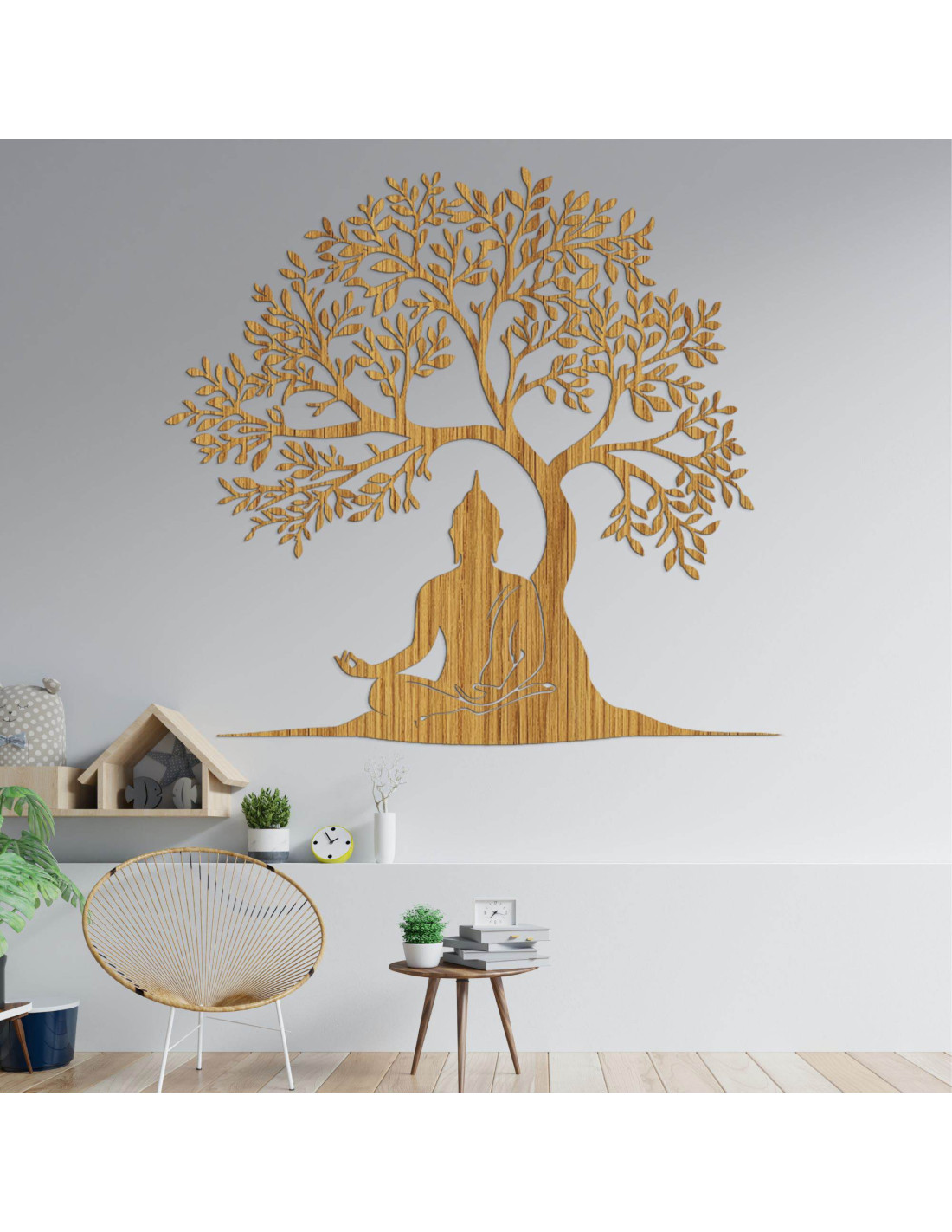 Fából készült életfa békés Buddha sziluettel