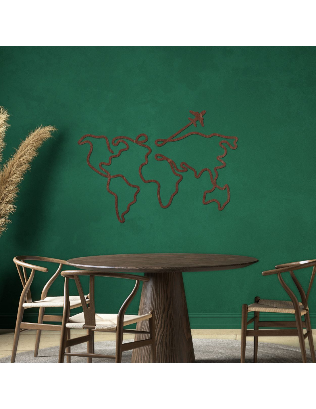 Egy fa falitérkép egy stílusos dekoráció , amely ötvözi a dizájnt és az utazás iránti szenvedélyt . A természetes anyag melegséget és eleganciát kölcsönöz a belső térnek, míg a térkép a világ felfedezésére és a személyes élményekre emlékeztet.