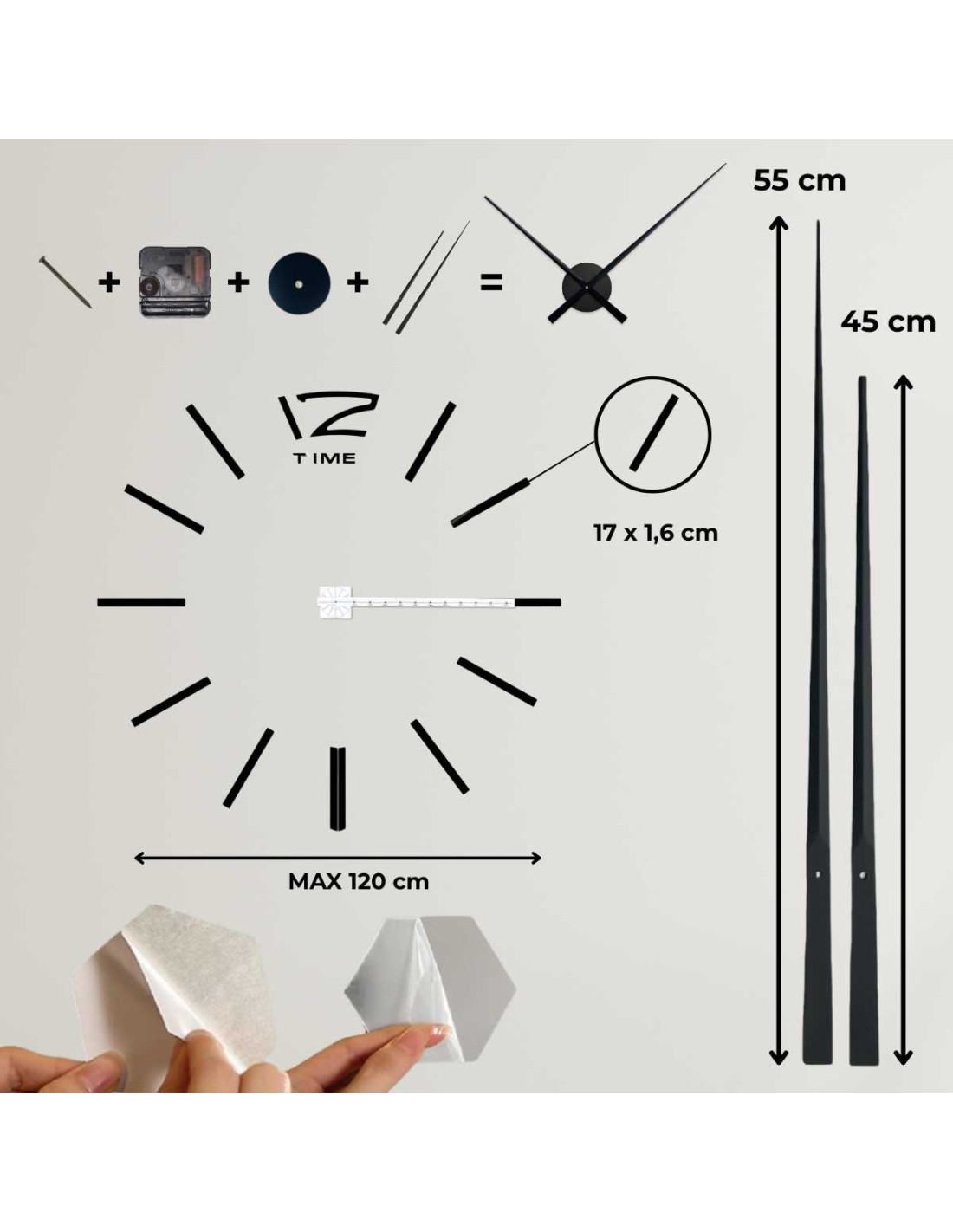 Ez a modern óra az elegáns minimalista dizájnt , a hárommutatós szerkezetet csendes és sima működéssel , valamint fúrás nélküli egyszerű összeszereléssel ötvözi .