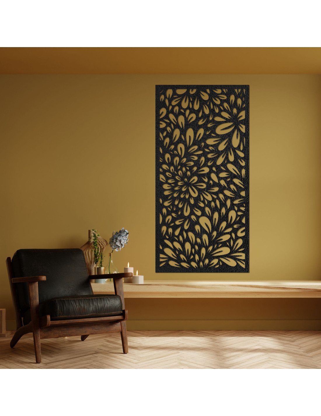 A levélmotívum a növekedés és a természetes egyensúly szimbolikáját hozza el otthonodba. A kifinomult dizájn harmóniát teremt és elegánssá teszi a teret. Akaszd a falra, és kényeztesd magad egy békés és inspiráló, esztétikus sarokkal.