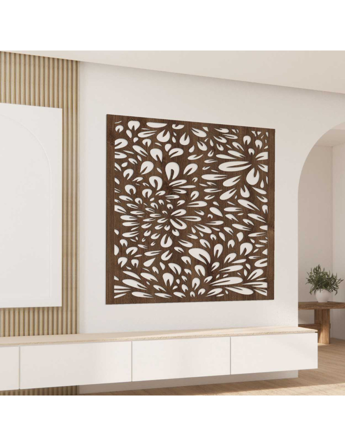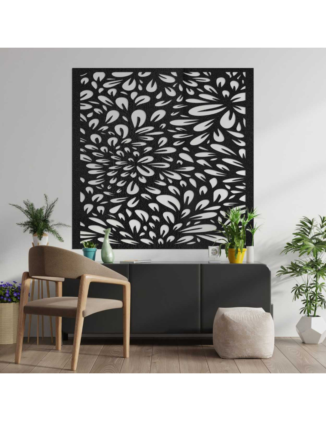 Négyzet alakú, faragott falpanel – virágminta - BOMB