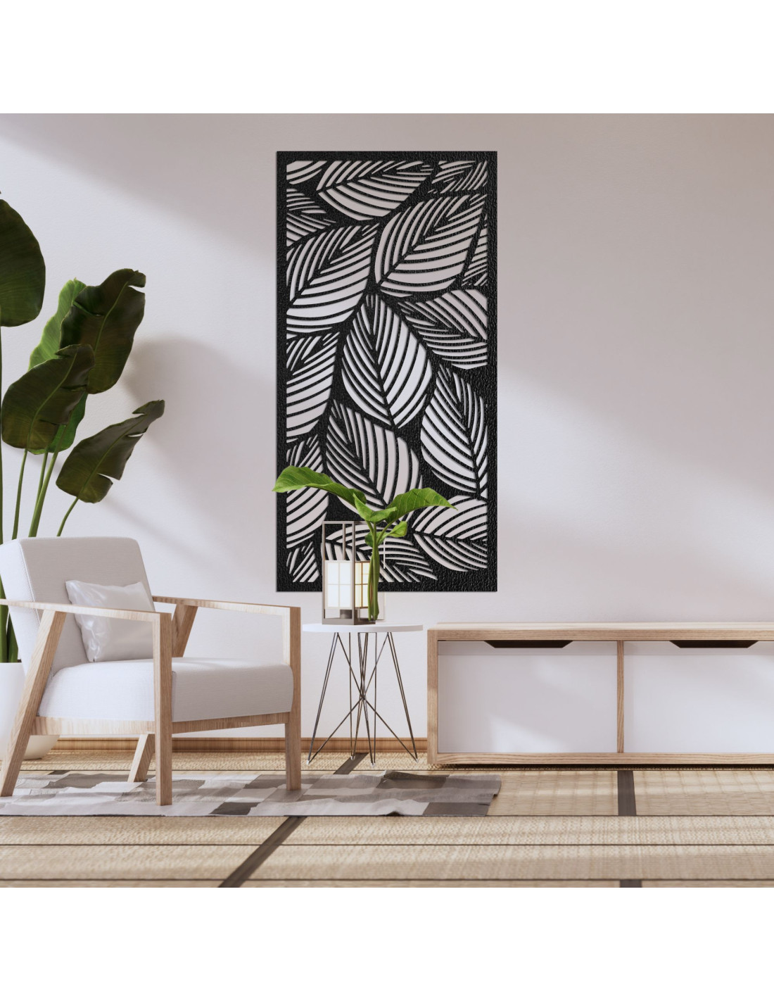 Stílusos, levélmotívummal díszített, fából készült falfestmény. A SENTOP trópusi panelfestmény természetes és modern megjelenést