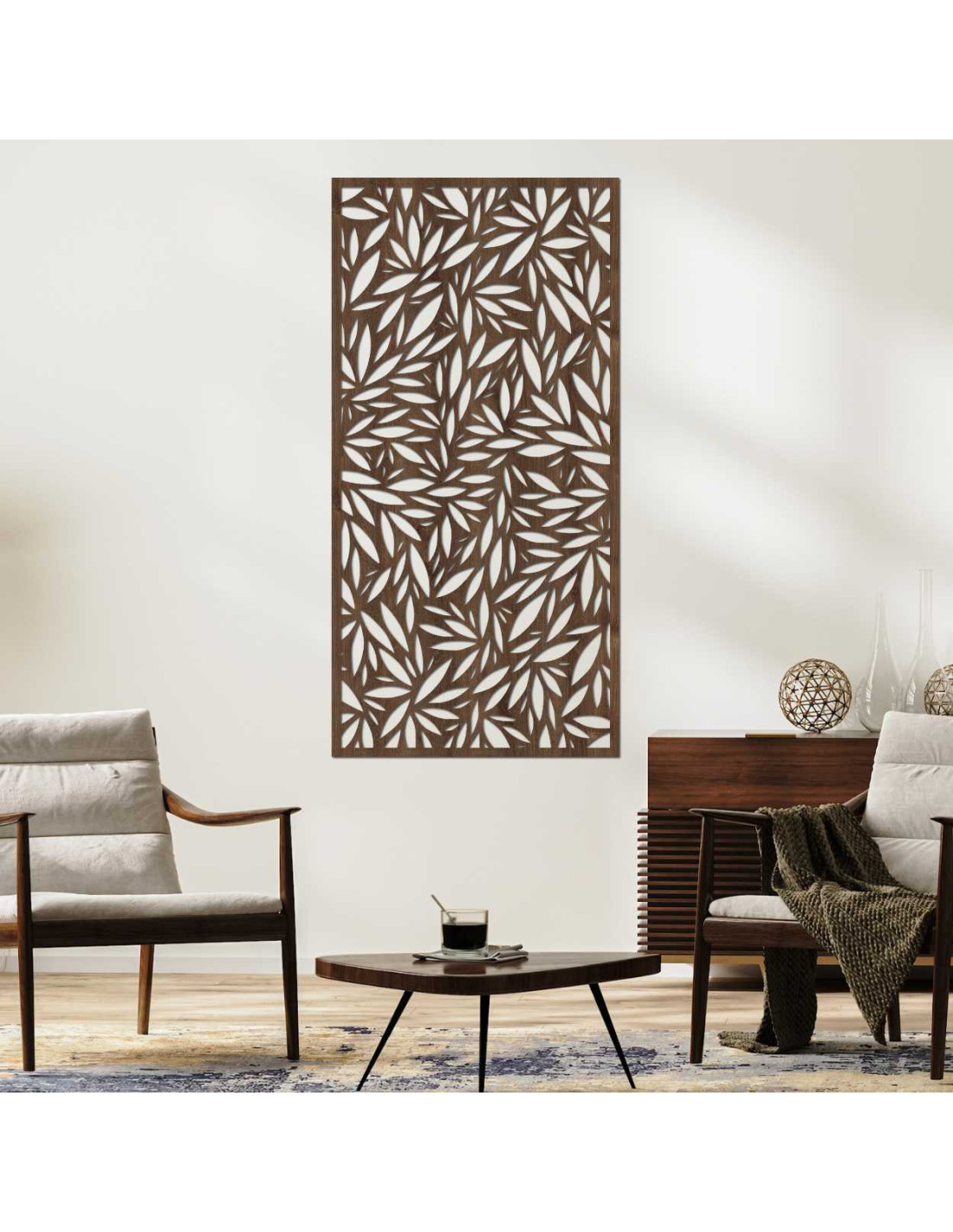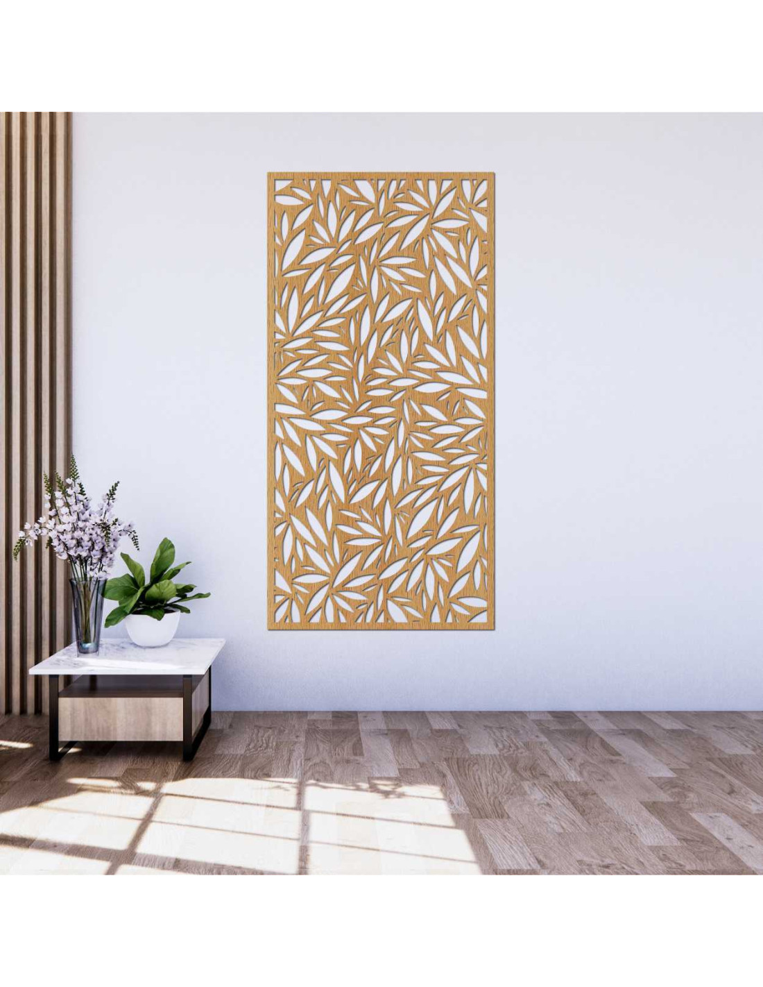 A növényi mintás fa kép eredeti dizájnt kölcsönöz részletesen faragott levelekkel.