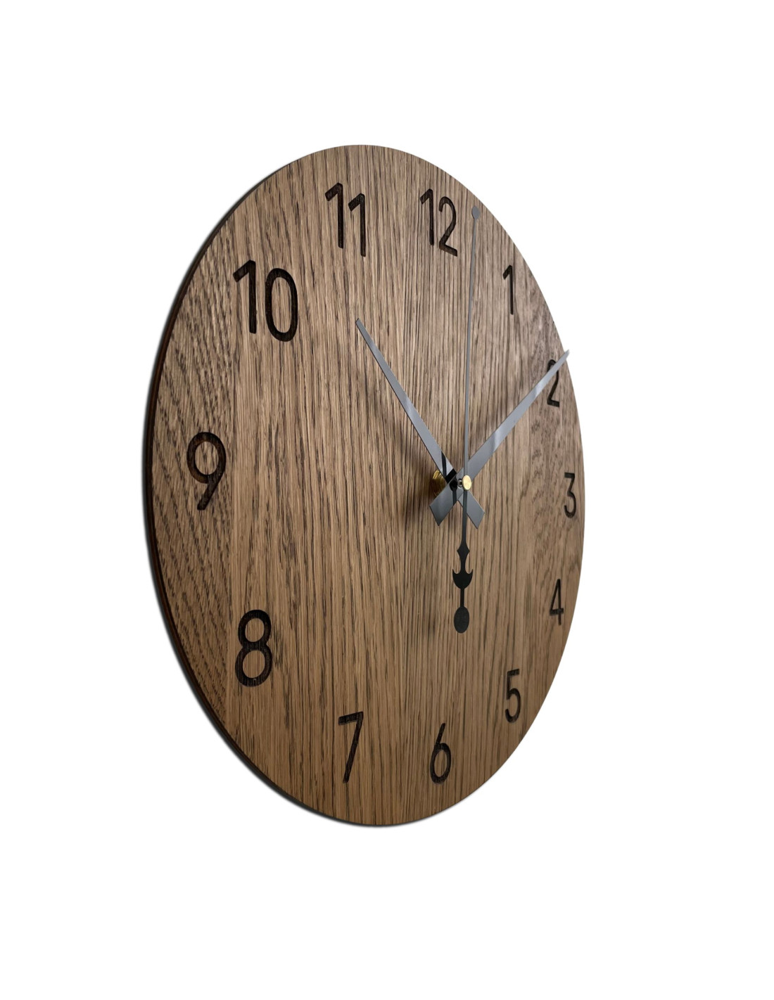 Ez a kézzel készített tölgyfa rétegelt lemezből készült falióra egy autentikus szlovák termék, amely ötvözi a fenntarthatóságot és az időtlen dizájnt. Minden darab egyedi a fa természetes szerkezetének és színárnyalatainak köszönhetően, amelyek egyedi karaktert adnak az órának. A gyártás kizárólag Szlovákiában (EU) történik.
