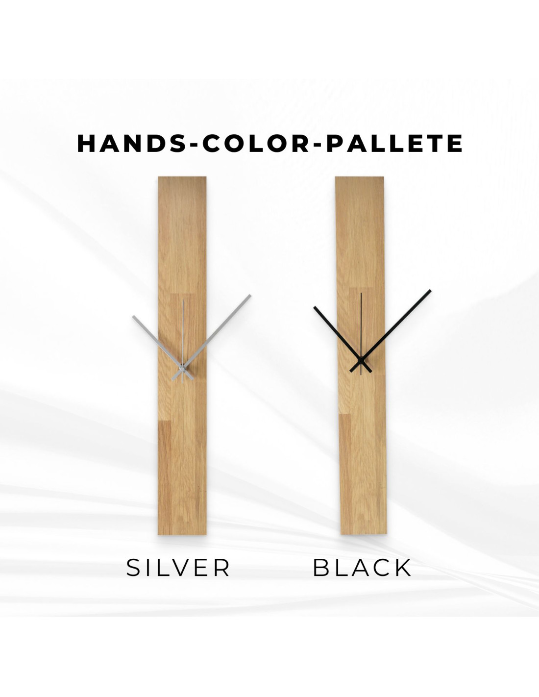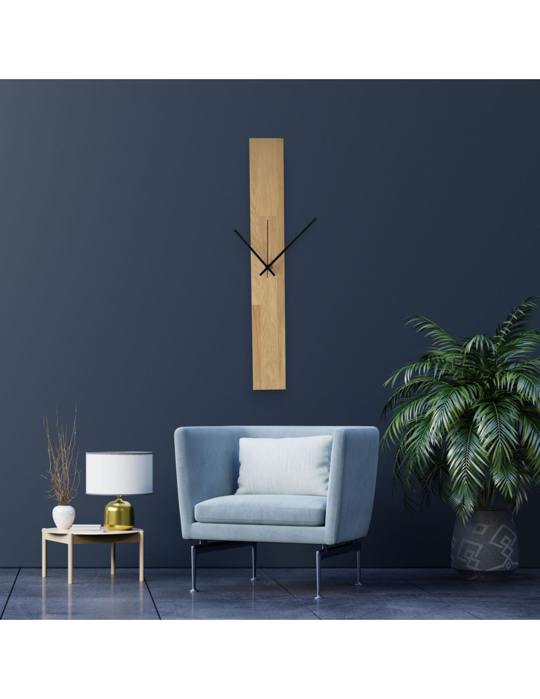 A számok nélküli minimalista dizájn kiemeli a fa természetes szépségét és a kidolgozás finom részleteit.