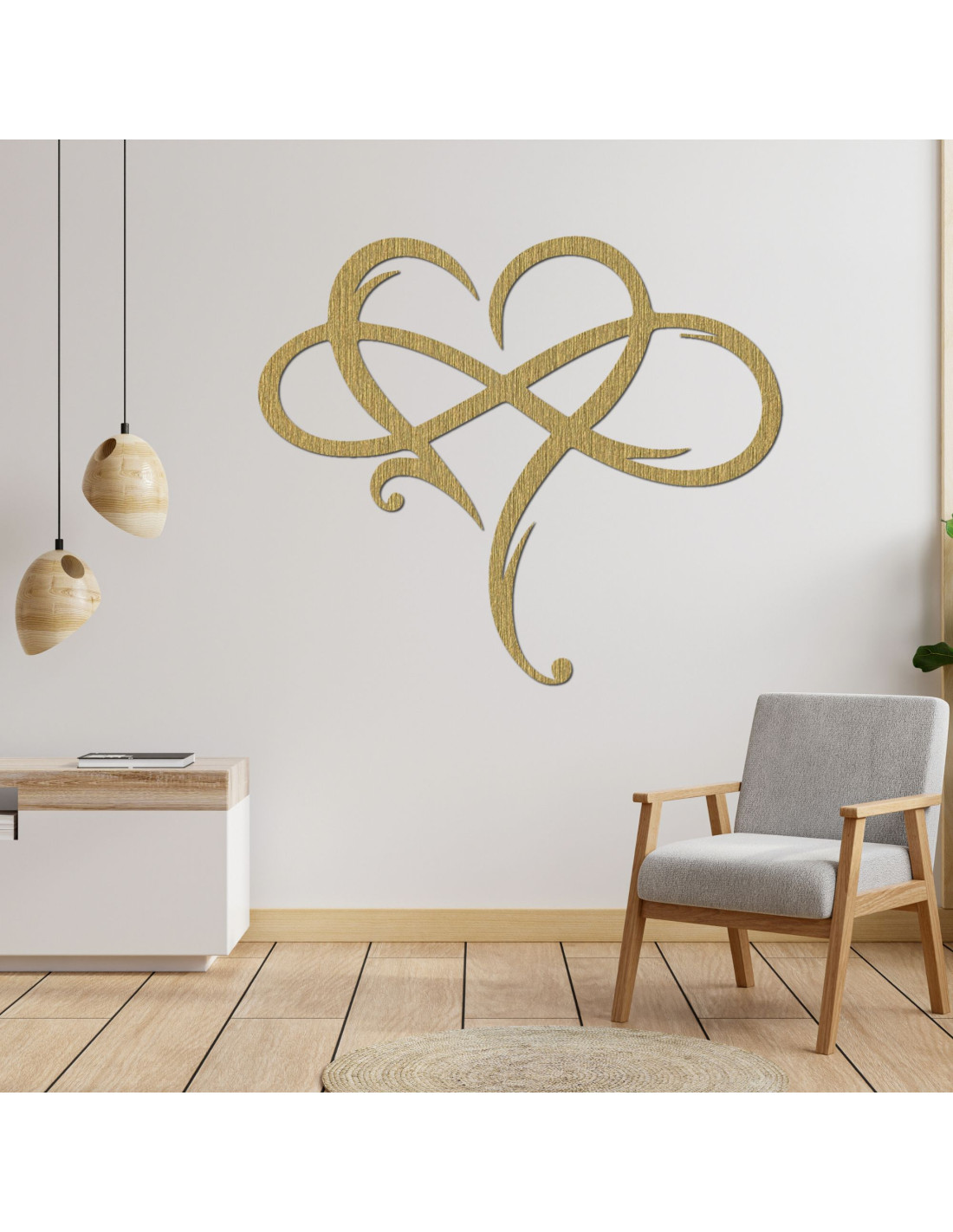 A kiváló minőségű rétegelt lemezből készült végtelen szív képe az örök szerelem és az erős kapcsolat szimbóluma.